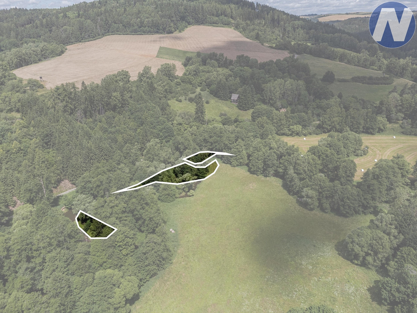 V zastoupení majitele nabízíme k prodeji soustavu tří rybníků na Kosově potoce o celkové rozloze 1 939 m², situovanou v nádherné přírodě katastrálního území Kříženec u Plané, nedaleko Mariánských Lázní.