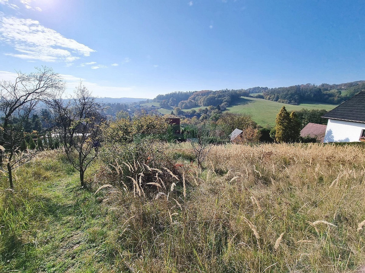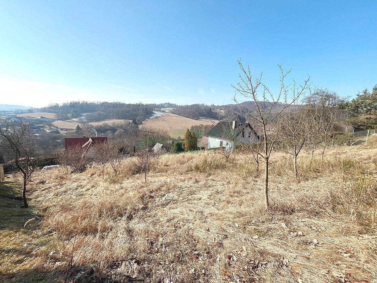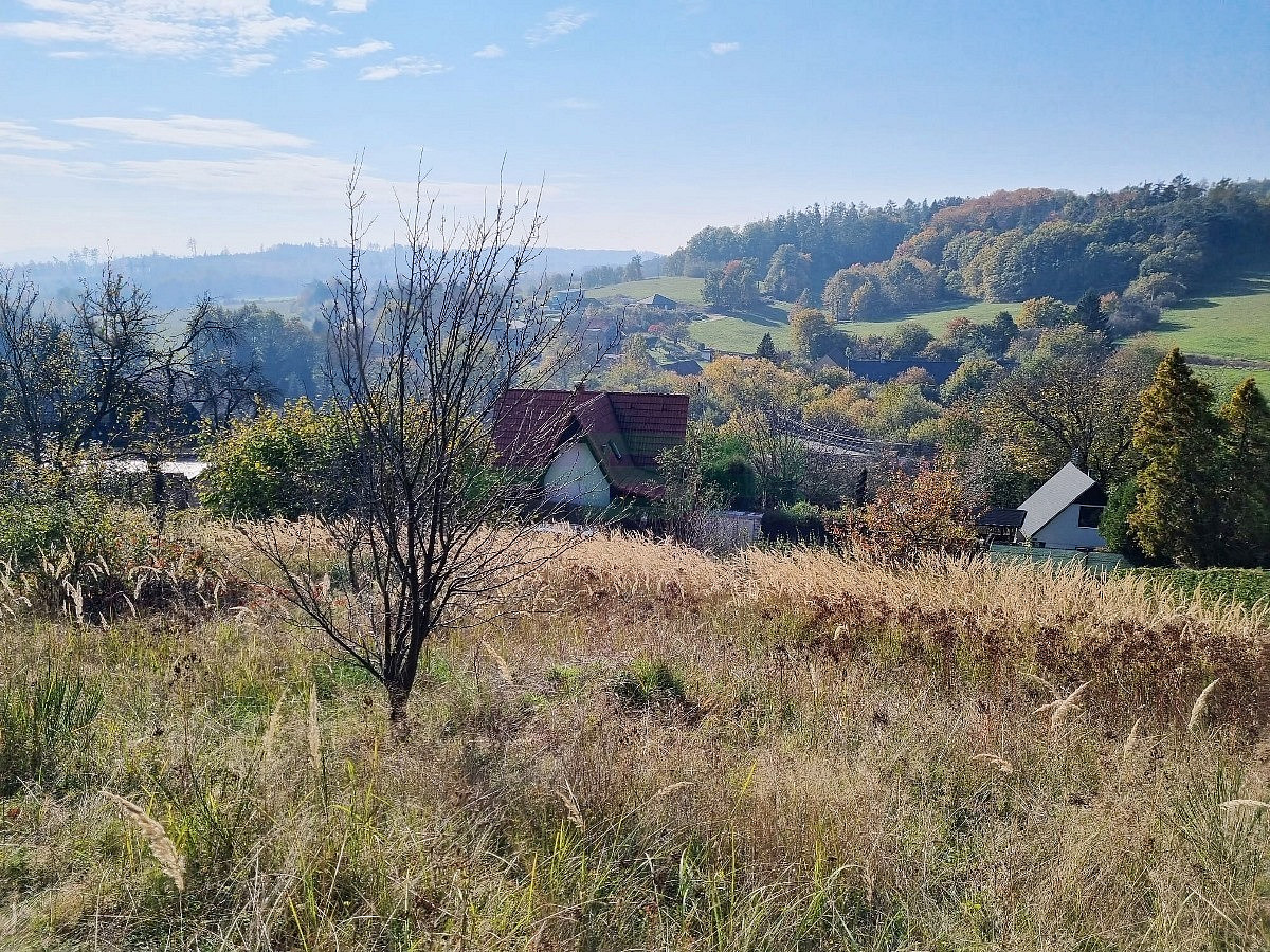 Pozemek je svažitý, nachází se v obydlené zástavbě domů a chat na kraji u remízku s překrásným výhledem.