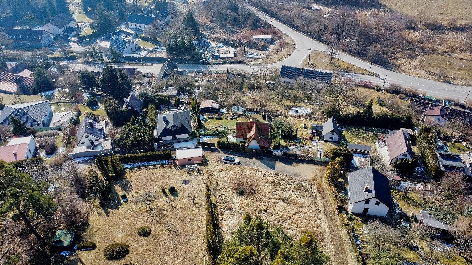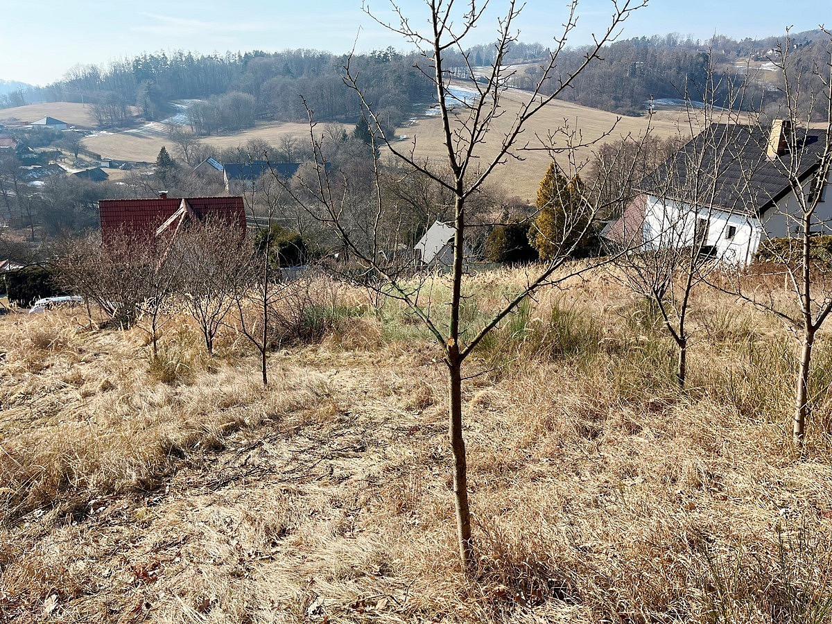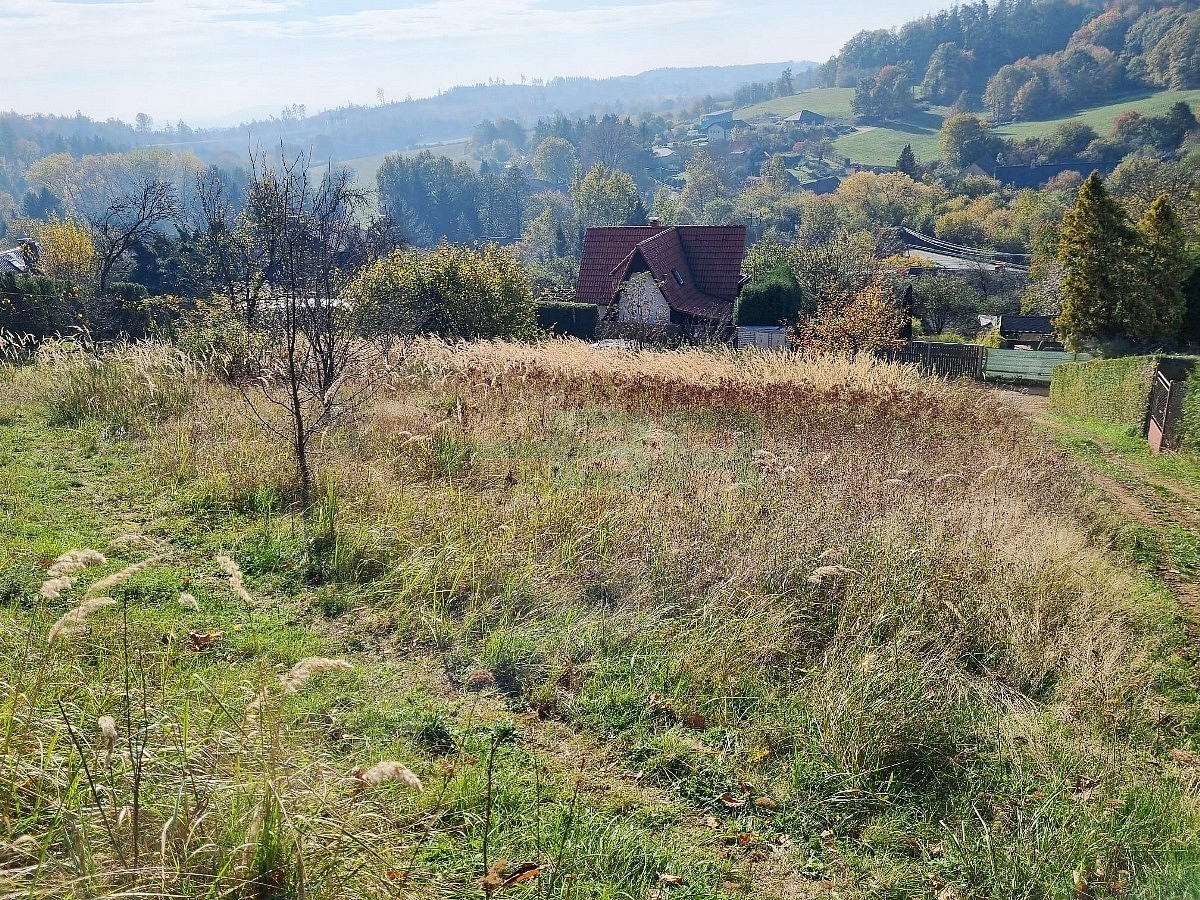 Pozemek je svažitý, nachází se v obydlené zástavbě domů a chat na kraji u remízku s překrásným výhledem.
