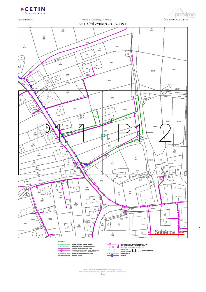 - Cetin: optický kabel vede po okrajích pozemků a je nutné zachovat ochranná pásma