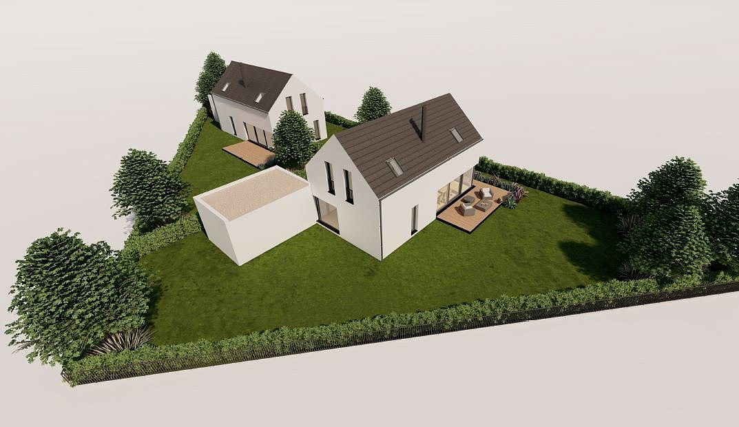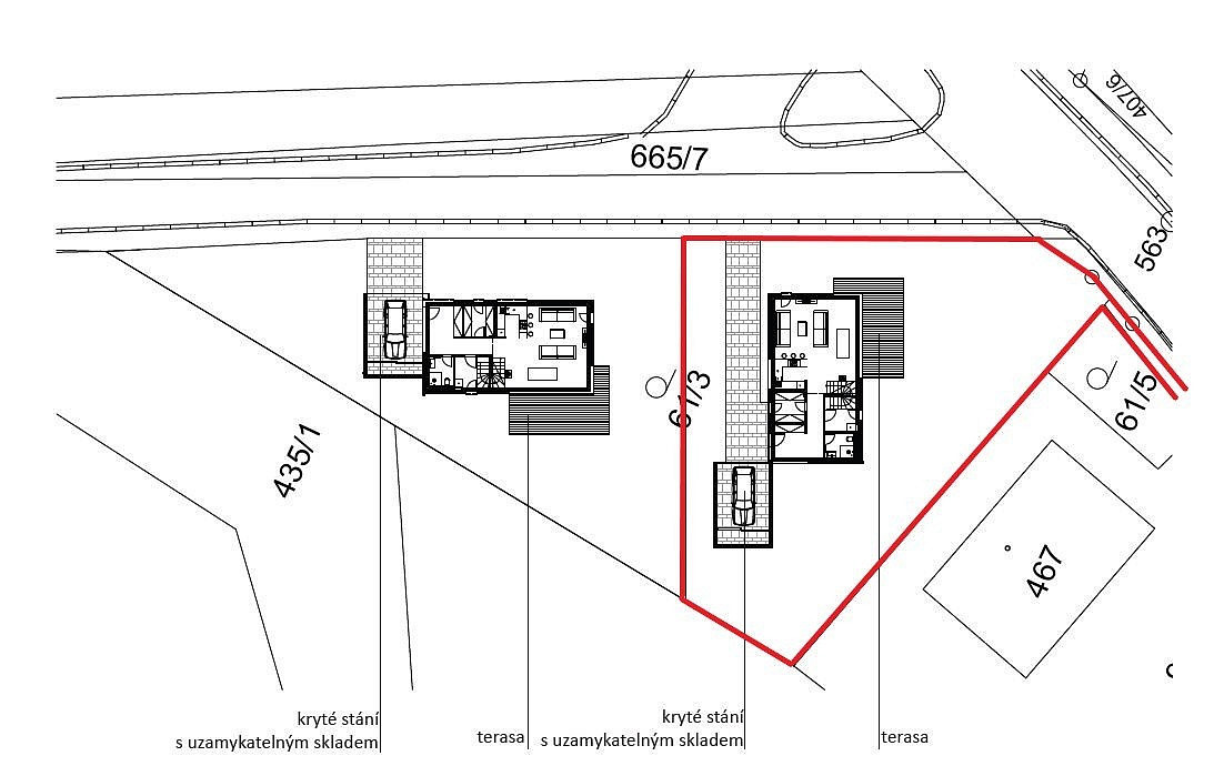 Pozemek vznikne rozdělením většího pozemku o celkové výměře 1 215 m² na dva menší pozemky (579 m² a 636 m²), na nichž jsou projektovány dva samostatné rodinné domy. Pozemek je tak ideálním místem pro bydlení jedné rodiny, ale i příležitostí pro samostatné bydlení více generací nebo spřátelených rodin, malý developerský projekt či investici. Kompletní projektová dokumentace k oběma rodinným domům je k nahlédnutí v kanceláři.