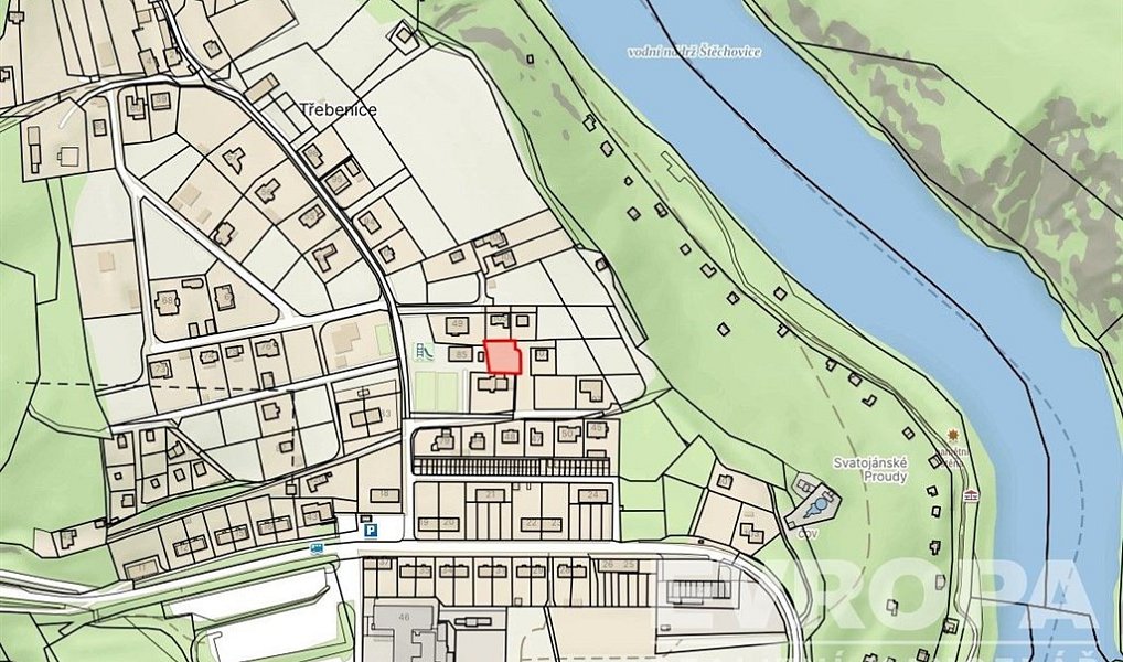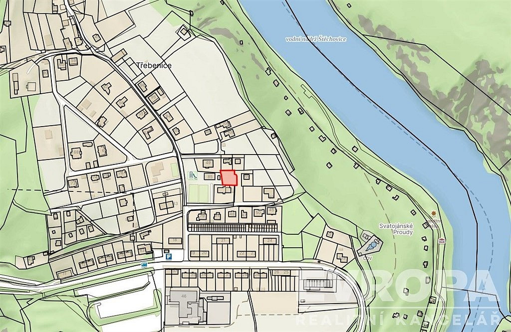 Pozemek je v centru obce, kousek od dětského hřiště a kurtů, autobusové zastávky, hospůdky U Taterů a vodní nádrže Štěchovice. Třebenice jsou známé především převozem mezi Slapskou a Štěchovickou přehradou (lodní doprava), přístavištěm parníků a naučnou stezkou Svatojánské proudy.