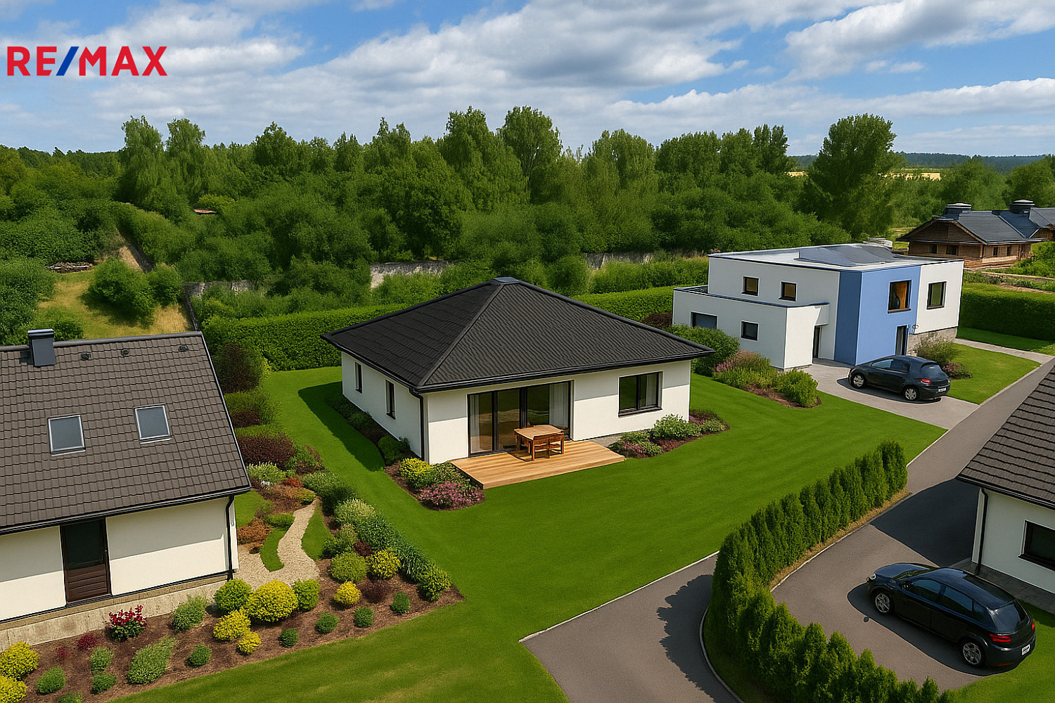 Cena pozemku zahrnuje kompletní projektovou dokumentaci na výstavbu bungalovu 4+kk a vydané stavební povolení, což výrazně urychlí a zjednoduší zahájení výstavby.