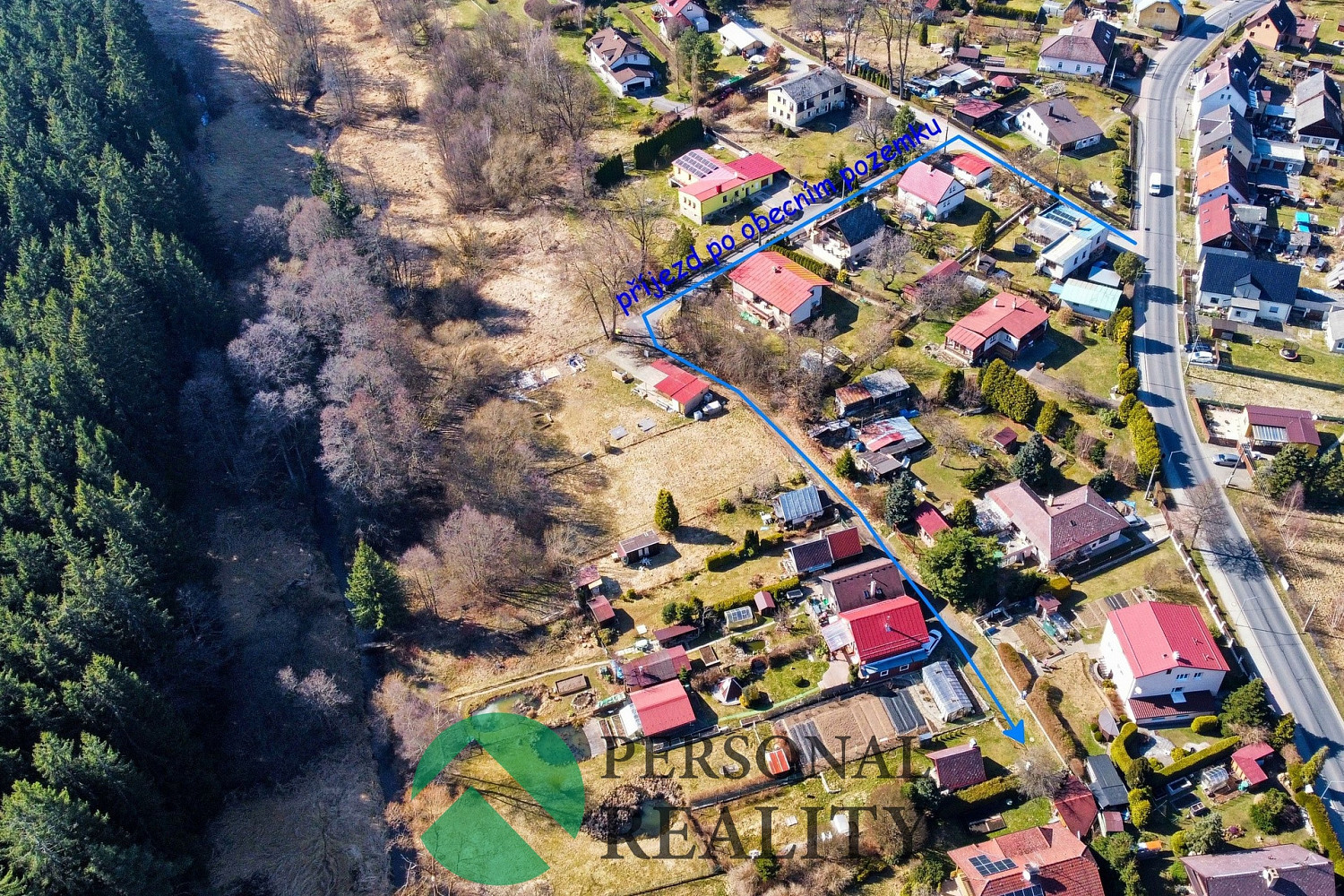 Přímo před pozemkem je přivedena kanalizace.
