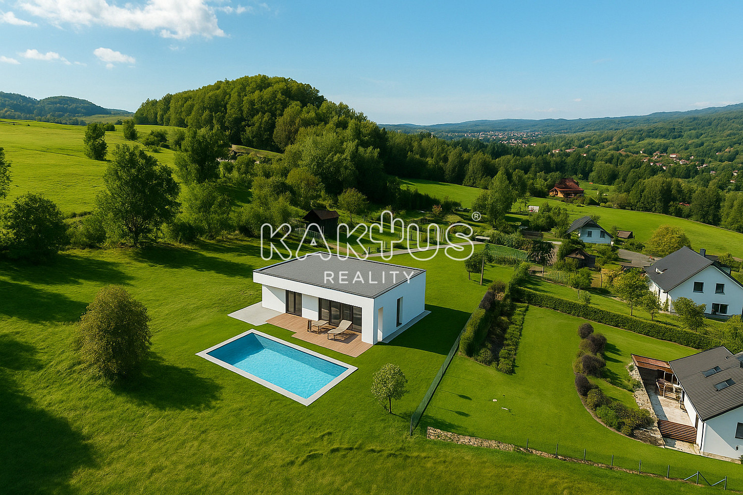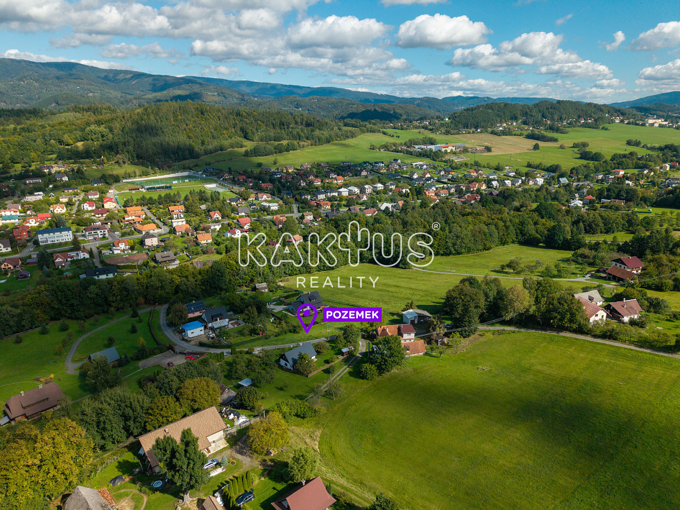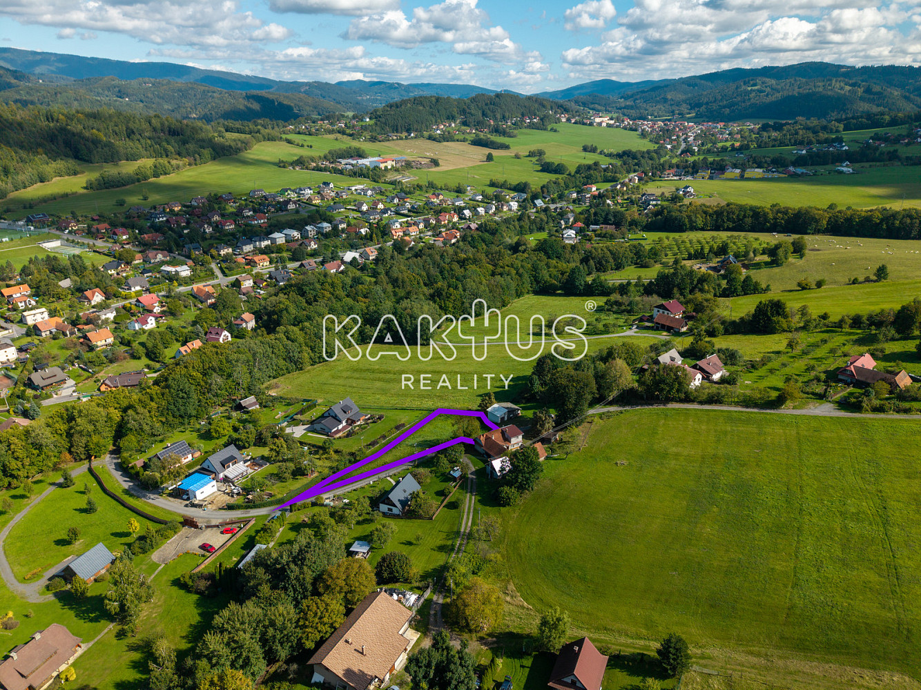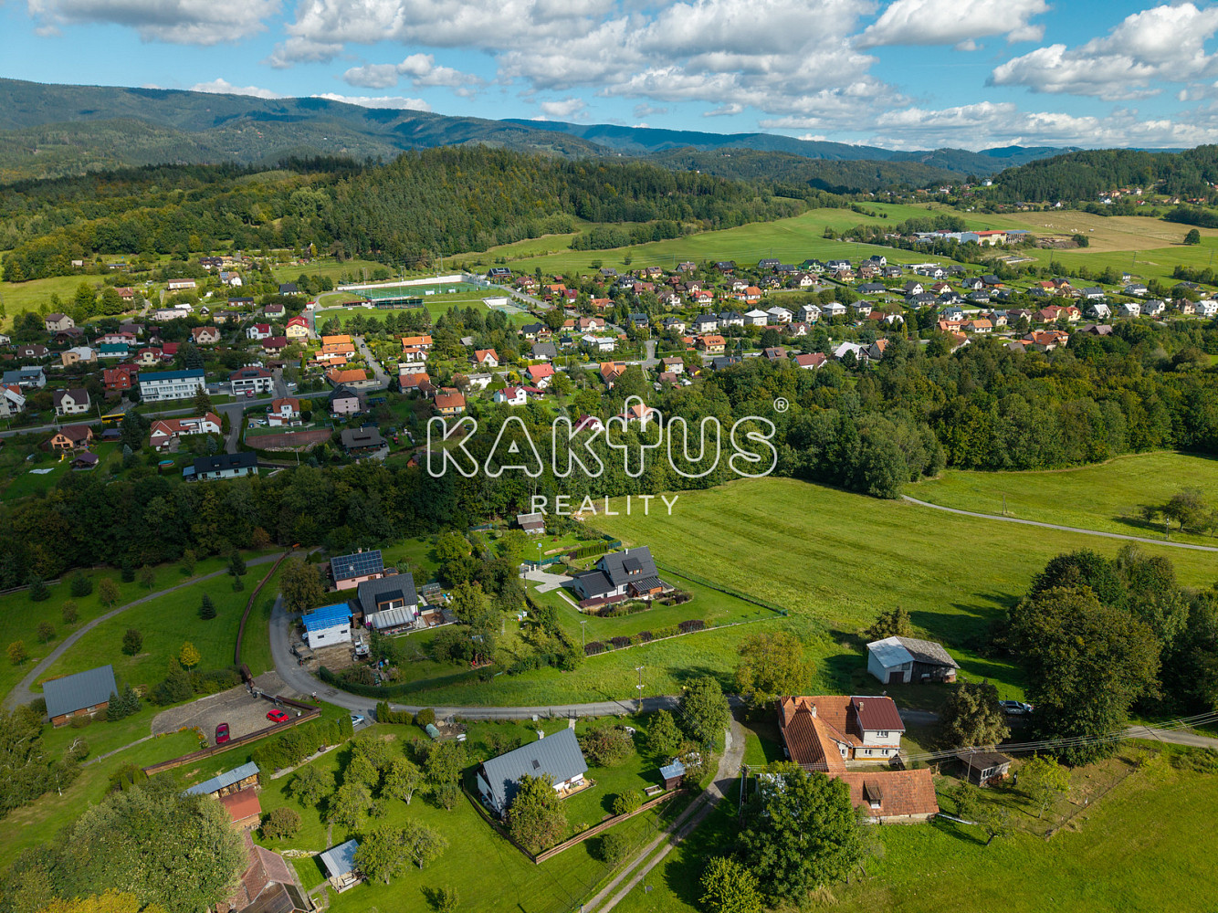 Pozemek je mírně svažitý, což umožňuje zajímavé architektonické řešení a zároveň poskytuje úchvatné výhledy do beskydské krajiny. Okolní zástavba je vkusná, stabilní a sousedství příjemné.