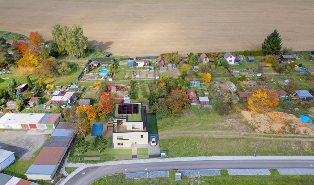 Pozemek je plně připraven pro výstavbu s dostupnou elektřinou (230V, 400V), dálkovým vodovodem a veřejnou kanalizací. Podle územního plánu zde můžete postavit rodinné domy, dvojdomy či řadové domy. Maximální výška zástavby povolená v této oblasti činí 3 nadzemní podlaží, což umožňuje kreativní architektonická řešení - viz vizualizace. Maximální zastavěná plocha je 25% pro soliterní RD, 50% pro řadový RD a 35% pro dvojdomek; plocha zeleně je vždy minimálně 40% plochy pozemku.