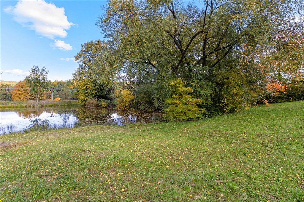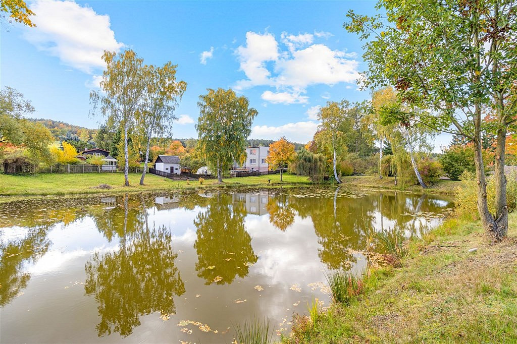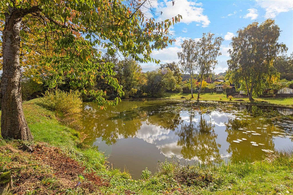 Krásný pozemek ve Zbirohu – stavební parcela s 1/2 podílem na rybníku. Parcelu je možno koupit i bez podílu na něm.