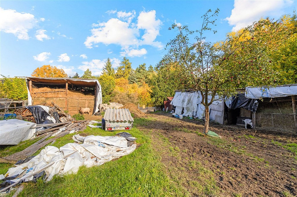 Majitel zde chová 2 koně na vyjížďky a kozy na mléko, je možné se domluvit na přenechání, pokud máte sen o malé farmě. Parcela bude při prodeji dle dohody vyklizena včetně krmení a materiálu.