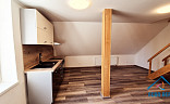 Byt je nově vybudovaný a vybavený kuchyňskou linkou se sklokeramickou varnou deskou, elektrickou troubou, dřezem, digestoří a velkou lednicí s mrazákem. Na podlahách vinylové krytiny. Podlahová plocha bytu je 49,1 m² s tím, že obývací pokoj má jednu sešikmenou stěnu a ložnice je plně podkrovní.