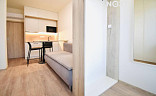 Je umístěn v přízemí s bezbariérovým vstupem, s výhledem do vnitrobloku rezidence. Vytápění je řešeno podlahovým topením a pro udržování kvalitního zdravého prostředí je vybaven rekuperací vzduchu s klimatizací. Přístup k internetu je zajištěn optickým kabelem.