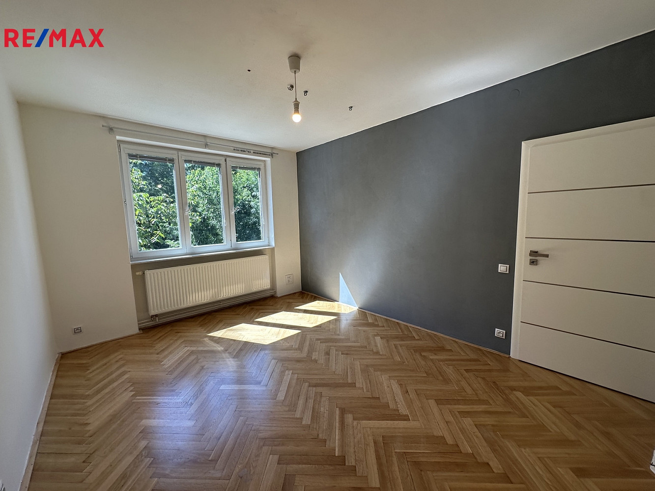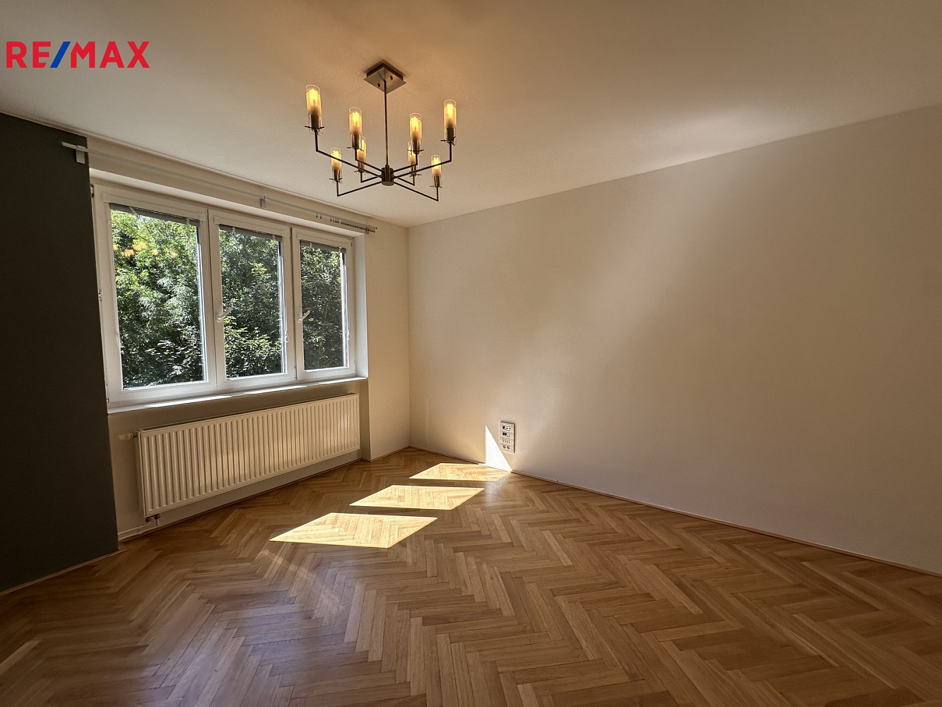 Byt prošel zdařilou modernizací : v pokojích jsou původní repasované dřevěné parkety, v předsíni a kuchyni vinylová podlahová krytina, okna jsou opatřena horizontálními žaluziemi.