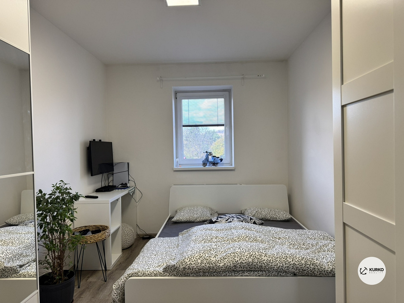 Byt se skládá z obytného pokoje s kuchyňskou linkou, útulnou ložnicí, koupelnou se sprchovým koutem, chodbou a samostatnou toaletou. Bytová jednotka se pronajímá bez vybavení, s možností jeho odkupu od současného nájemníka.
