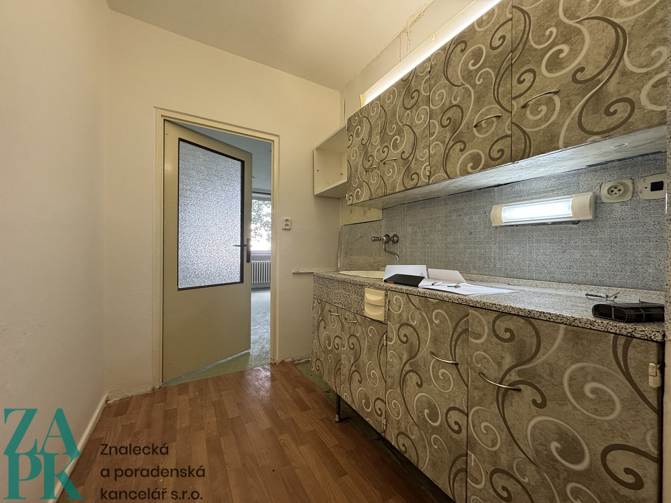 Byt nabízí prostorný pokoj, který slouží zároveň i jako ložnice. Kuchyň je bez spotřebičů. V koupelně je sprchová vanička, umyvadlo, toaleta. Byt se nabízí bez vybavení. Podlahovou krytinu v celém bytě tvoří lino. Okna jsou plastová, včetně vnitřních žaluzií. Vytápění je dálkové ústřední do radiátorů.