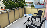Další vybavení bytu: jídelní stůl se dvěma židlemi, dvě šatní skříně, obývací stěna. Na balkóně dvě nová křesla se stolkem.