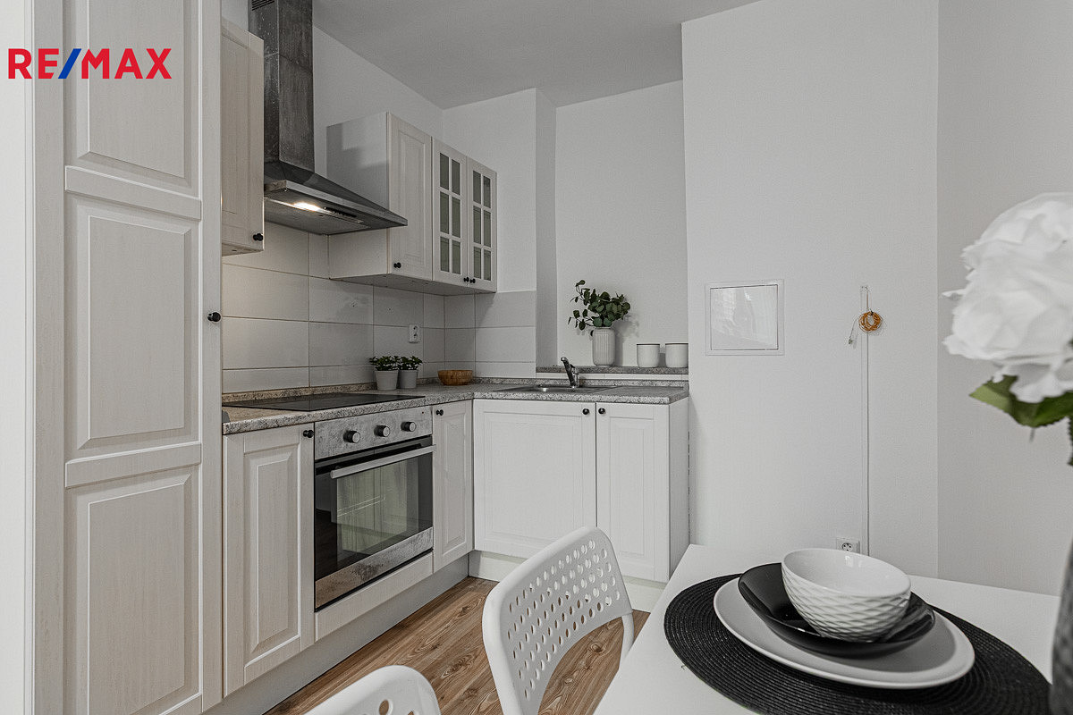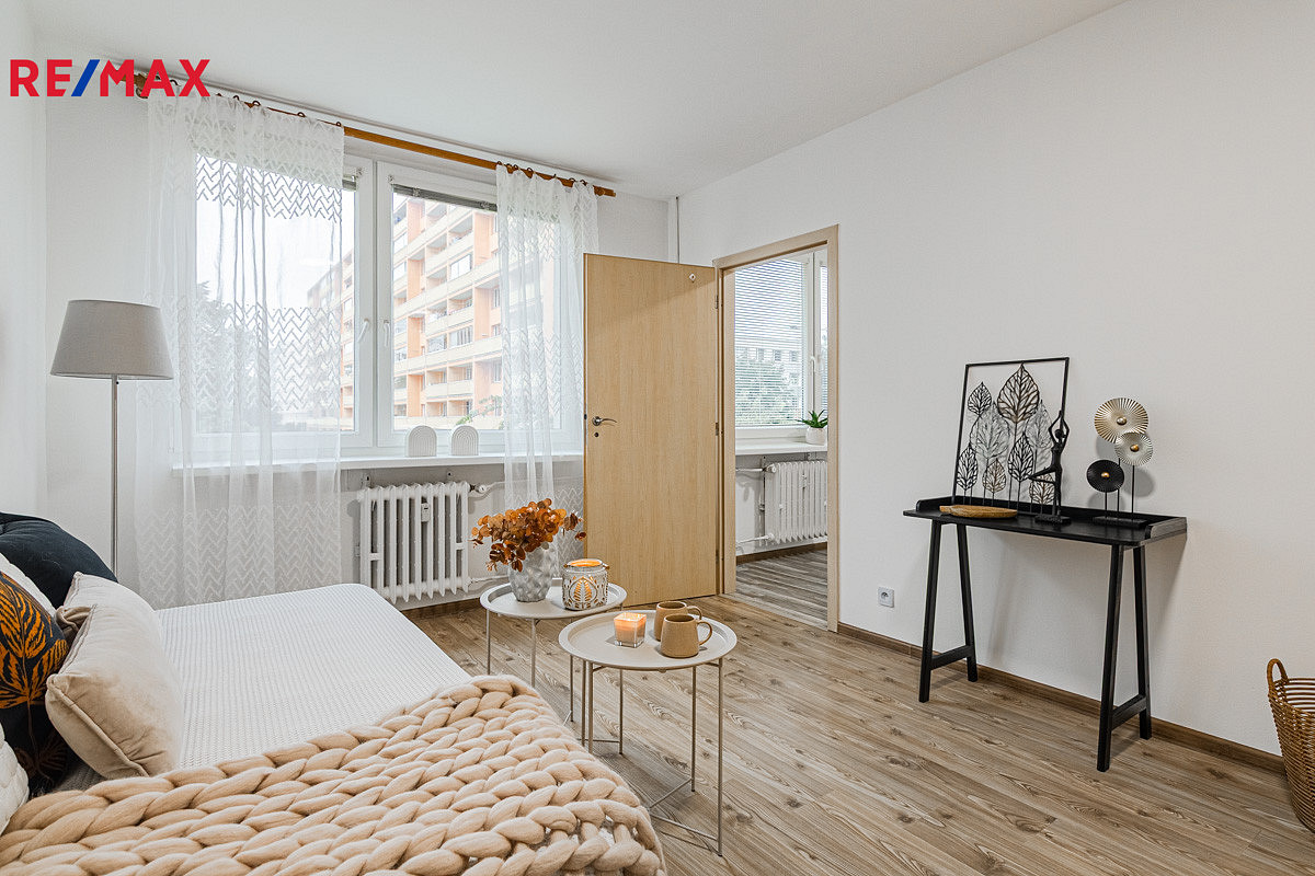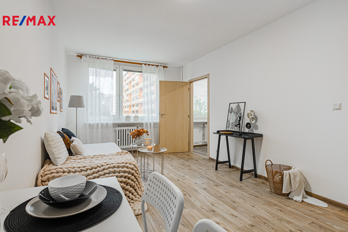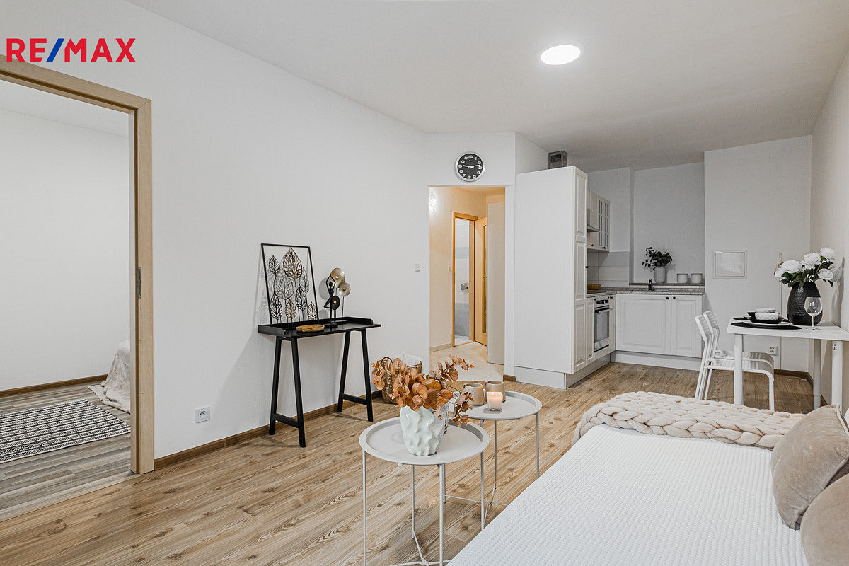 Byt je ve velmi dobrém stavu. Součástí bytu je kuchyňská linka, která je vybavena sklokeramickým sporákem s elektrickou troubou a digestoří. Byt nabízí prostorný obývací pokoj s dostatkem denního světla. V obytných místnostech a kuchyni je plovoucí podlaha, v chodbě a v koupelně je dlažba. Koupelna má zděné jádro s vanou. K bytu náleží sklep o rozloze 2 m². Vytápění bytu a ohřev vody je centrální domovní. Byt má plastová okna a je k dispozici ihned. V domě je kamerový systém a vstup na čip. Parkování je možné v těsné blízkosti domu.
