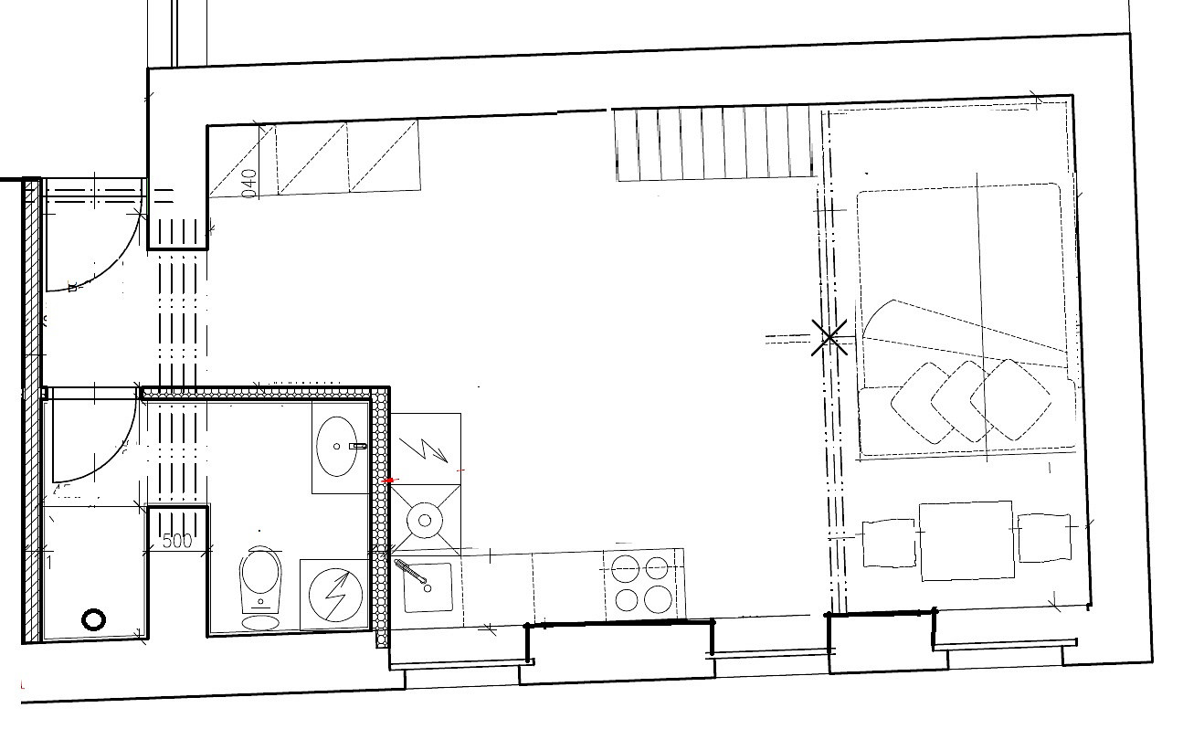 Byt se skládá ze zádveří, kuchyně propojené s obývacím pokojem a vybudovaného patra pro spaní a příslušenství. Kuchyně kompletně vybavená všemi spotřebiči, lednice s mrazákem, sklokeramická deska, el. trouba, myčka. Koupelna společná s WC, vybavena toaletní skříňkou, umyvadlem, sprchovým koutem, přípojkou pro pračku. K