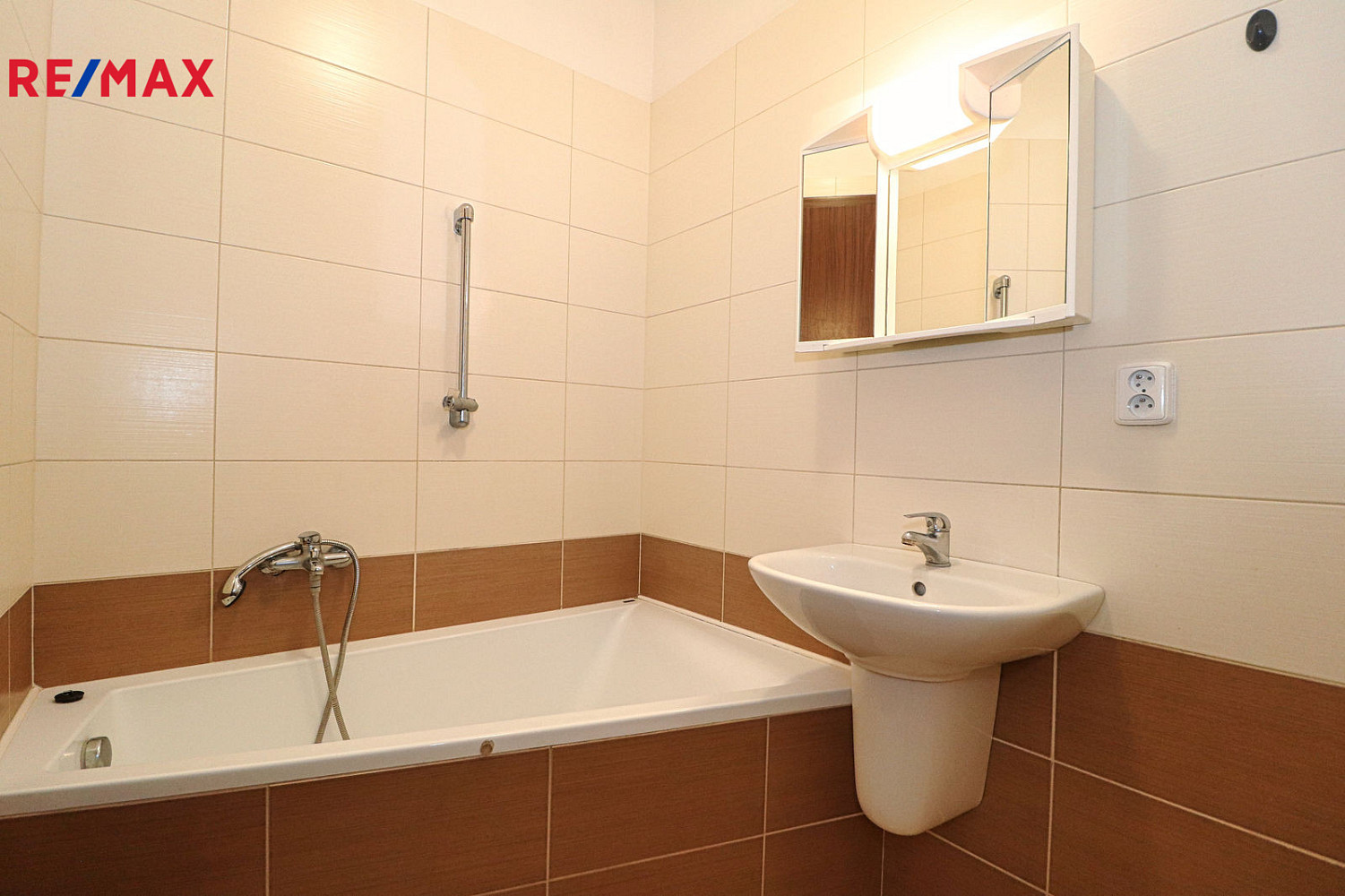 Byt je tvořen předsíní se vstupem do koupelny, která je zařízená vanou, umyvadlem, toaletou a připojením na pračku, dále obývacím pokojem s kuchyňským koutem, jenž je vybaven horkovzdušnou troubou se sklokeramickou varnou deskou, lednicí. V obytné místnosti je položena plovoucí podlaha, v předsíni a koupelně dlažba.