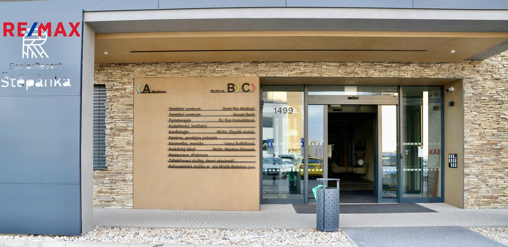 Ve vstupní hale se nachází příjemná kavárna, dále posezení s knihovnou a řada potřebných služeb, jako ordinace praktického a zubního lékaře, pečovatelské, zdravotní a fakultativní služby přímo do apartmánu, fyzioterapie a tělocvična, masáže, manikúra, pedikúra, kolárna, a další. Venkovní zahrádka slouží nejen pro odpočinek, ale i pro společenské, kulturní nebo vzdělávací akce. Okolní park nabízí posezení na volných i krytých lavičkách, cvičení na venkovních posilovacích strojích a hřiště pro petanque.