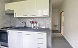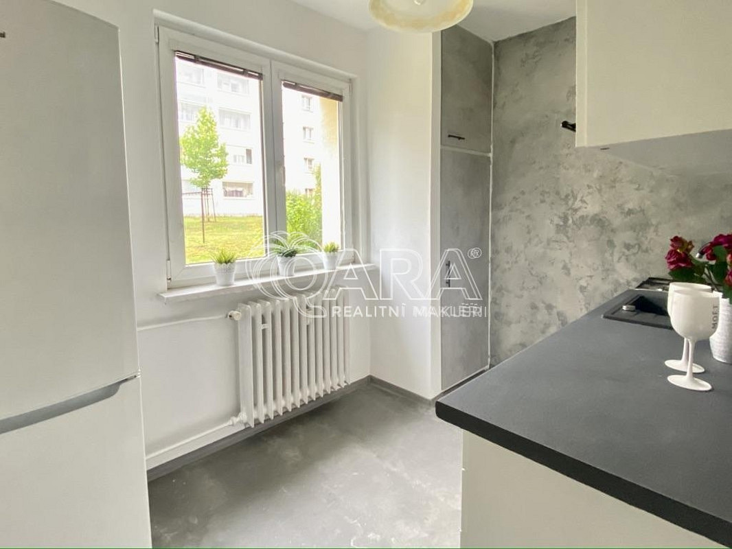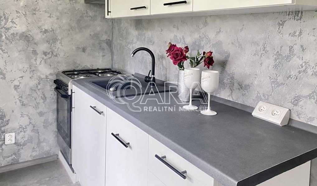Kuchyň je vybavena novou linkou, betonovou stěrkou na stěnách a praktickou myčkou o šířce 40 cm. Středový pokoj, který spojuje dva menší pokoje, nabízí flexibilní možnosti využití. Předsíň poskytuje dostatek prostoru pro vestavěné skříně, což ocení každý, kdo potřebuje více úložného prostoru.