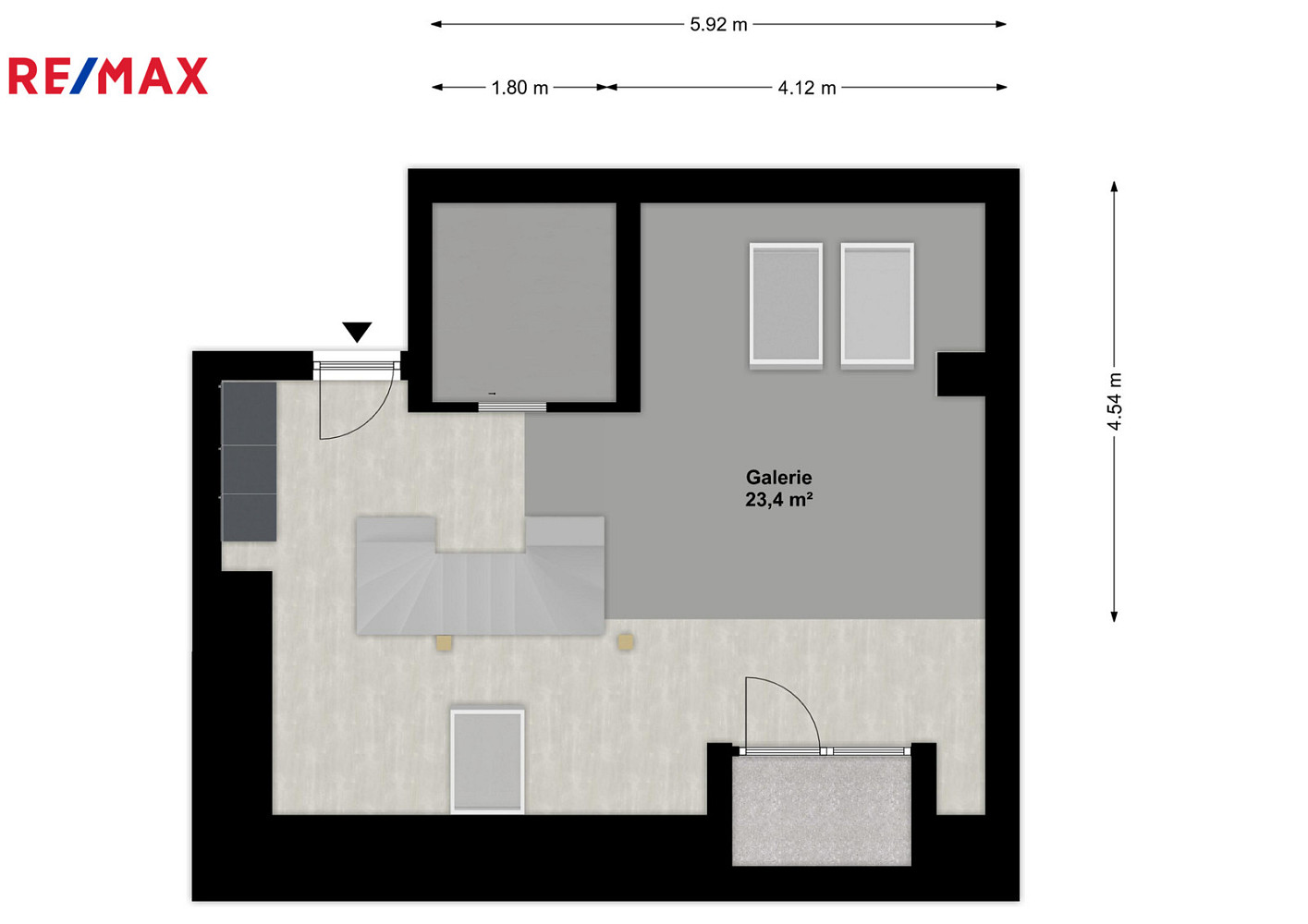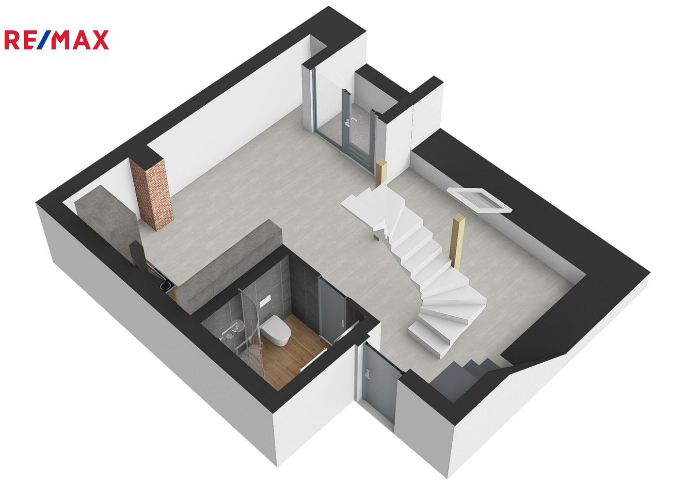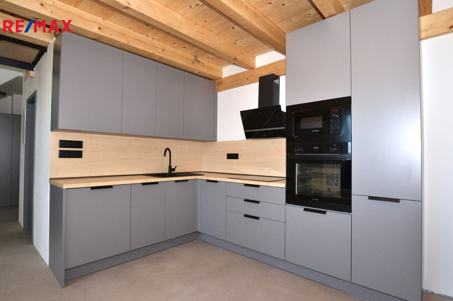 Byt čeká na svého prvního nájemce. Okna obývacího pokoje s lodžií jsou orientována na západní stranu, střešní okna ložnice jsou orientována na východní stranu do zahrady se vzrostlými stromy, kterou nájemce může využívat k relaxaci.
