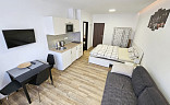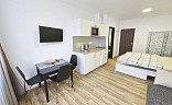 Byt je kompletně zařízený a vhodný pro jednu osobu.