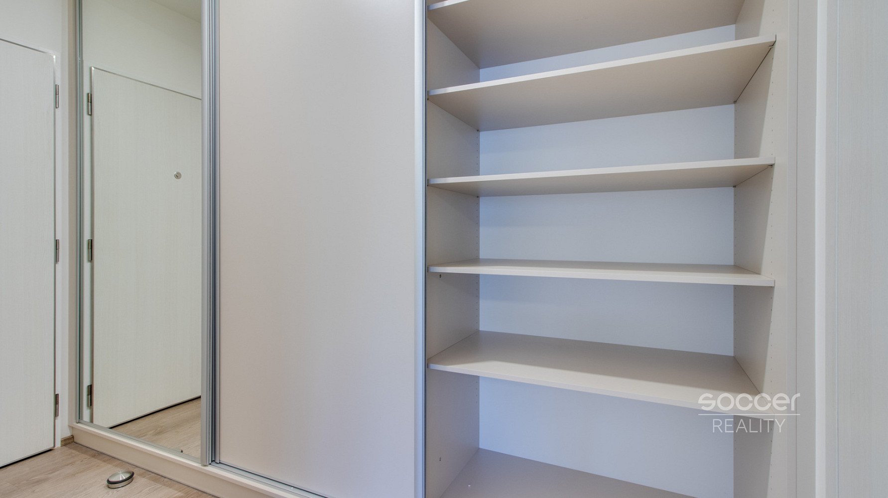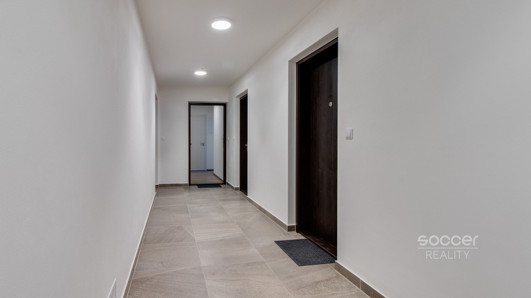 Byt je vybavený kuchyňskou linkou na míru se všemi spotřebiči včetně myčky, na chodbě jsou pak opět na míru vyrobené vestavěné skříně, které poskytují dostatek úložného prostoru. V koupelně pračka. Koupelna je se sprchovým koutem a WC dohromady.