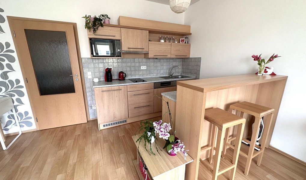 Nabízíme k pronájmu útulný a slunný byt 1+kk v moderní novostavbě v Praze 9 – Kbelích. Byt tvoří prostorná předsíň s vestavěnými skříněmi a světlá obývací místnost s plně vybaveným kuchyňským koutem. Koupelna je se sprchovým koutem a toaletou. Okna jsou plastová, orientovaná na jih, vybavená roletami. Vytápění i ohřev vody jsou zajištěny dálkově. Na podlaze je kombinace PVC a dlažby. Byt se pronajímá včetně nábytku. V okolí se nachází veškerá občanská vybavenost a je zde výborná dopravní dostupnost – zastávka MHD s přímým spojením na metro „C“ Letňany (cca 10 minut). Pro více informací kontaktujte makléřku.