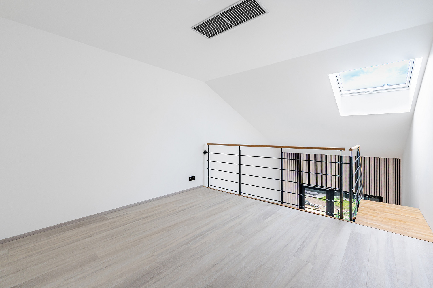Nový loftový byt 2+kk o celkové výměře 38,5 m² se nachází v 3. NP a náleží k němu balkon o velikosti 5,7m². Byt je orientován do klidné části. Jednotka disponuje v dolním patře prostorným obývacím pokojem, vybaveným novou značkovou nadstandardní vestavěnou kuchyňskou linkou včetně kvalitních spotřebičů (vestavná lednice s mrazákem, sklokeramická varná deska, myčka na nádobí, pečící trouba trouba, digestoř) a samostatnou neprůchozí ložnicí v horním patře. Koupelna má sprchový kout, pračku a je spojená s WC. Předsíň nabízí instalovanou šatní skříň. Byt se pronajímá částečně zařízený.