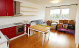 Kuchyně je vybavena lednicí s mrazákem, varnou deskou, el. troubou a myčkou. K dispozici je pračka. Byt prošel před několika lety rekonstrukcí. Je zde zděné jádro, novější kuchyňská linka, vestavěné skříně. K dispozici je sedačka, postel bez matrací, stůl a židle. Okna bytu jsou orientována na jižní stranu s výhledem do zástavby rodinných domů.