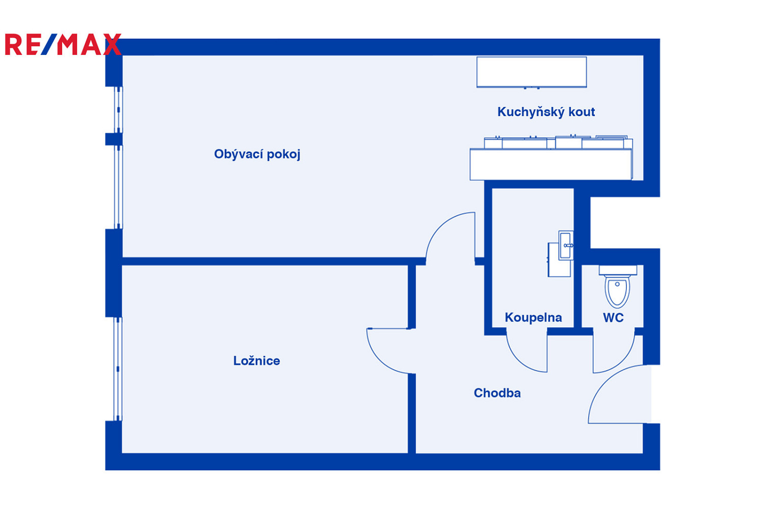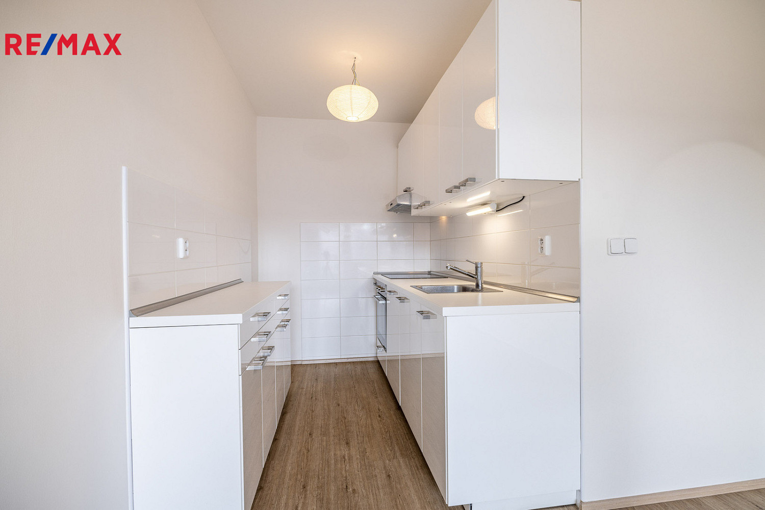 Byt tvoří světlý obývací pokoj s kuchyňskou linkou, ložnice, koupelna se sprchovým koutem a samostatná předsíň. Kuchyňská linka je vybavena základními spotřebiči. Byt se pronajímá bez dalšího zařízení, což umožňuje doladit si interiér podle vlastních představ.