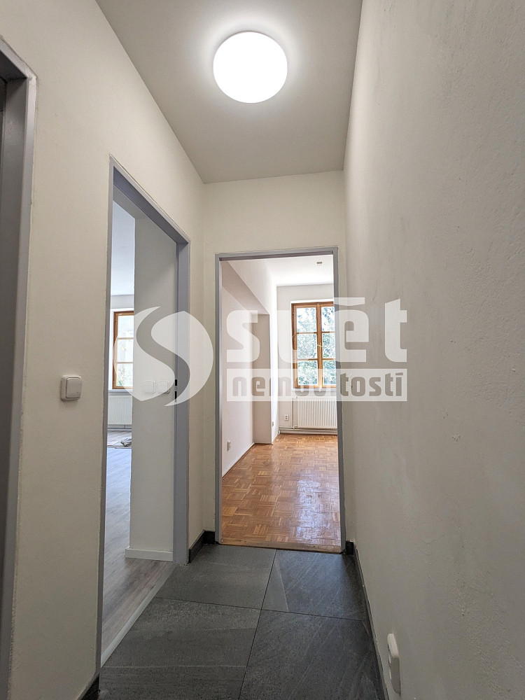 Byt prošel kompletní rekonstrukcí a je připraven k okamžitému nastěhování. Dispozice zahrnuje předsíň, koupelnu s toaletou, samostatnou ložnici a světlý obývací pokoj s kuchyňským koutem.