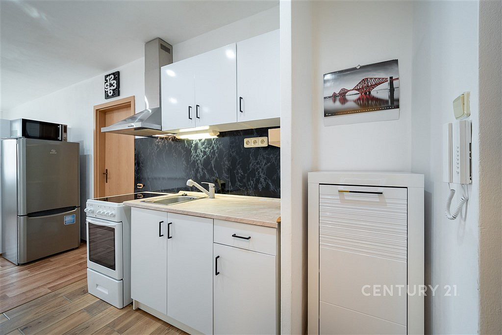 Klidný, čistý a světlý. Tak lze charakterizovat tento byt, který je aktuálně volný pro nového nájemníka. Klidný, jelikož se nachází v krajním panelovém domě bez rušných ulic. Čistý, díky kompletní kvalitní renovaci interiéru. Podlahy, omítky, toaleta i kuchyň... Opravdu stačí odemknout a bydlet. Světlý je díky orientaci oken na jih a vše podtrhují použité barvy v celém bytě.