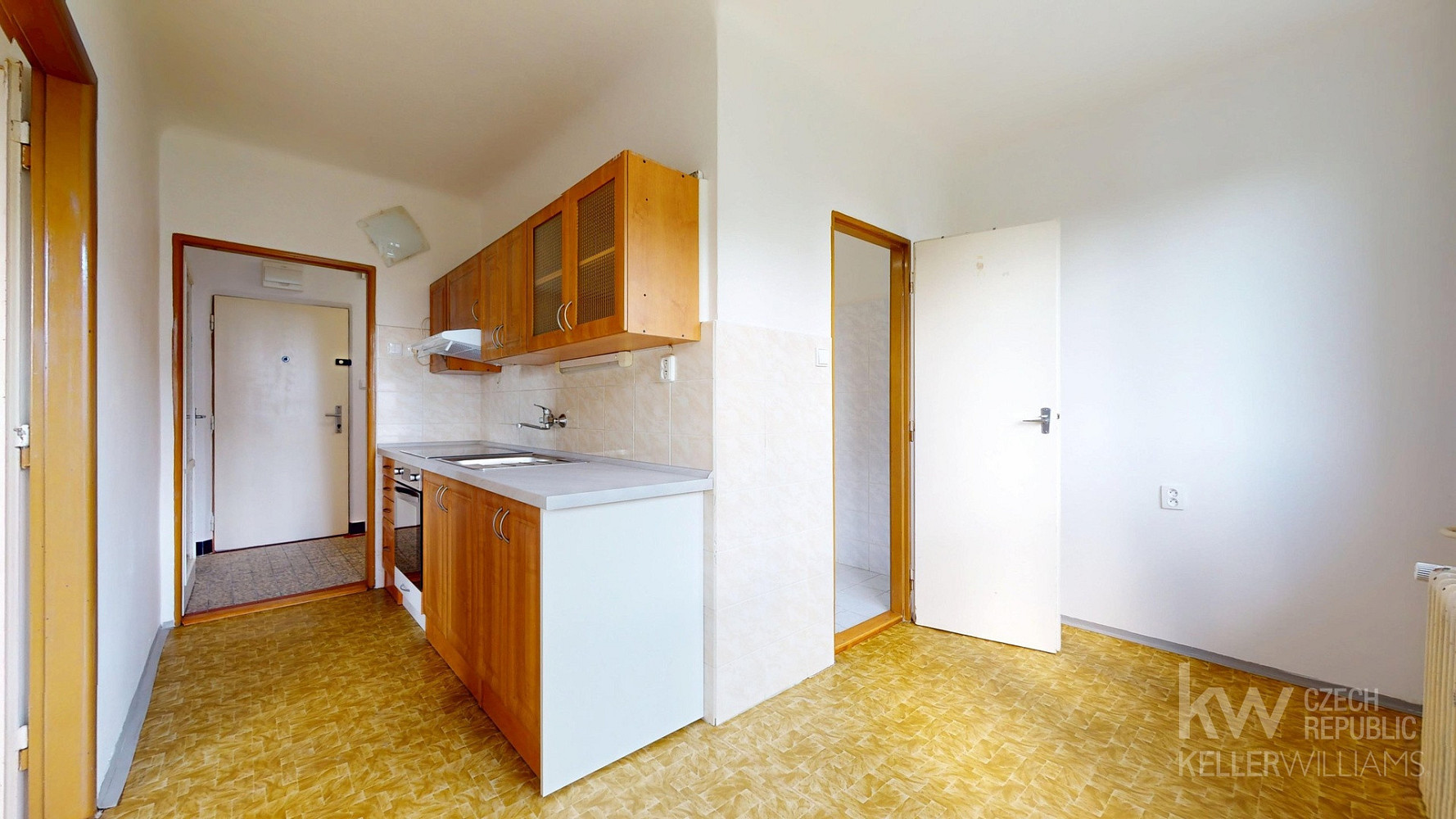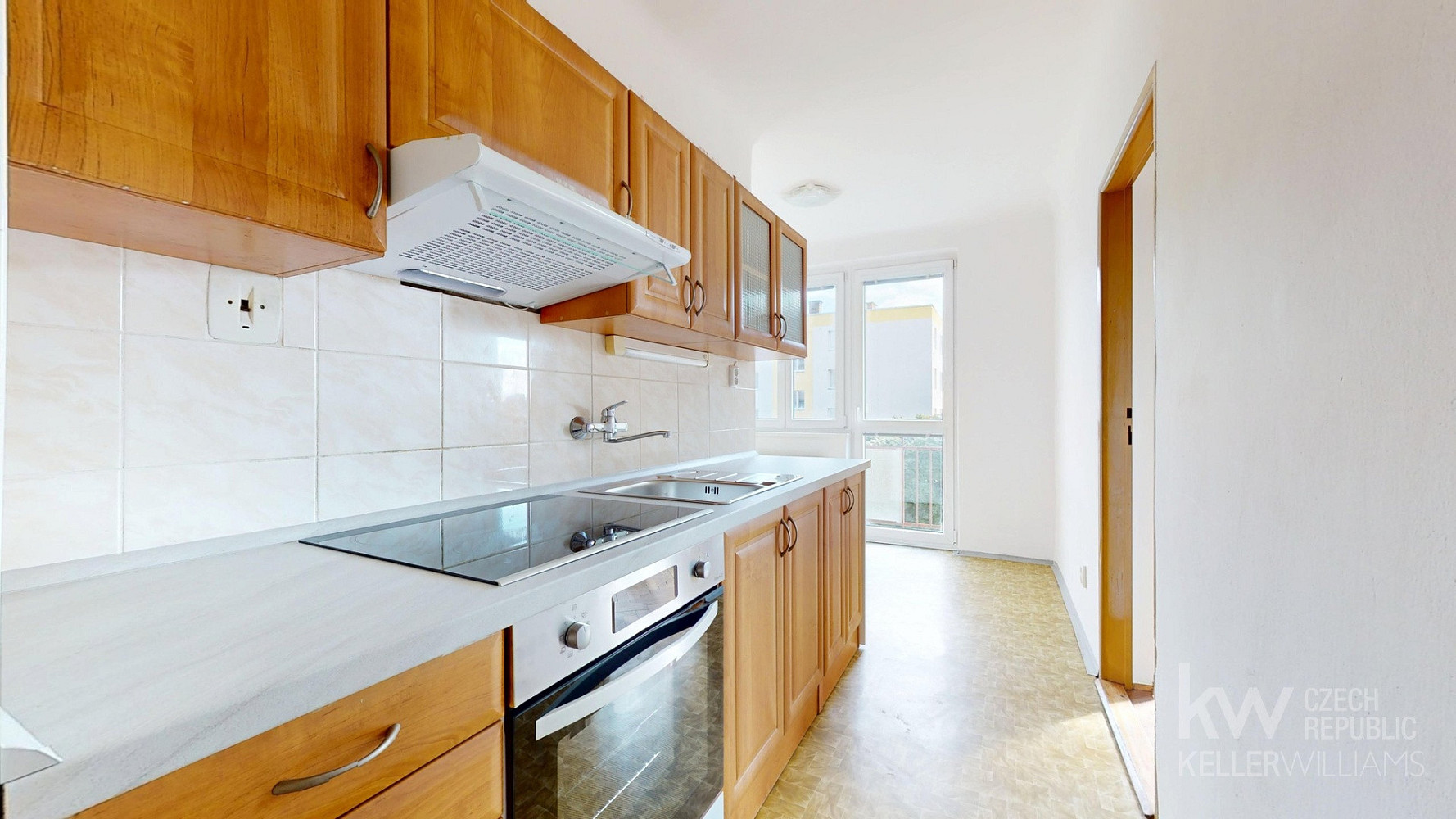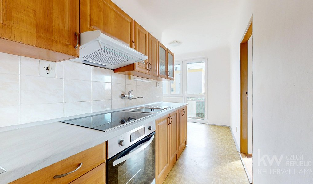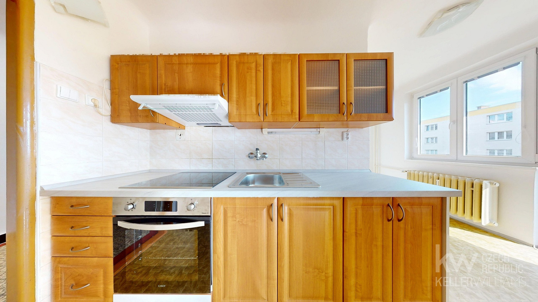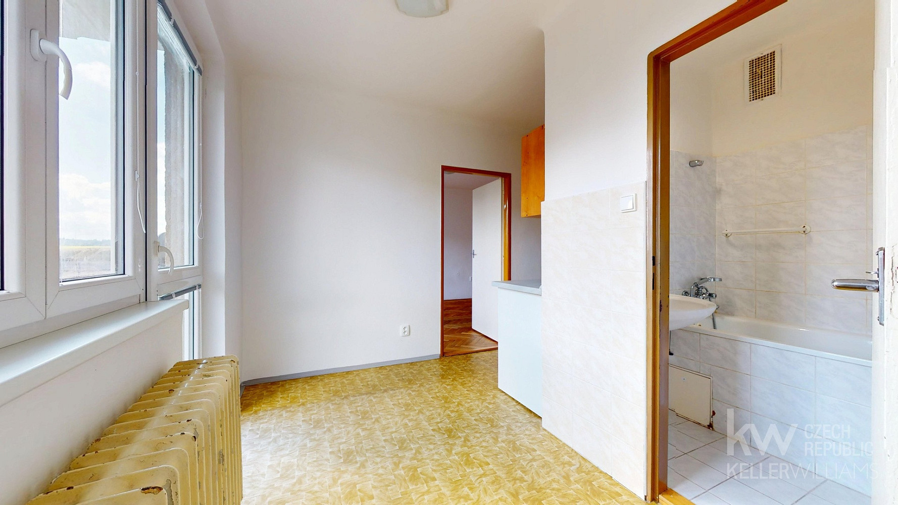 Byt má dobrou dispozici, viz přiložený půdorys, dva samostatné, stejně velké pokoje a uprostřed bytu kuchyně s koupelnou.