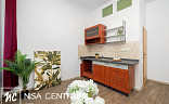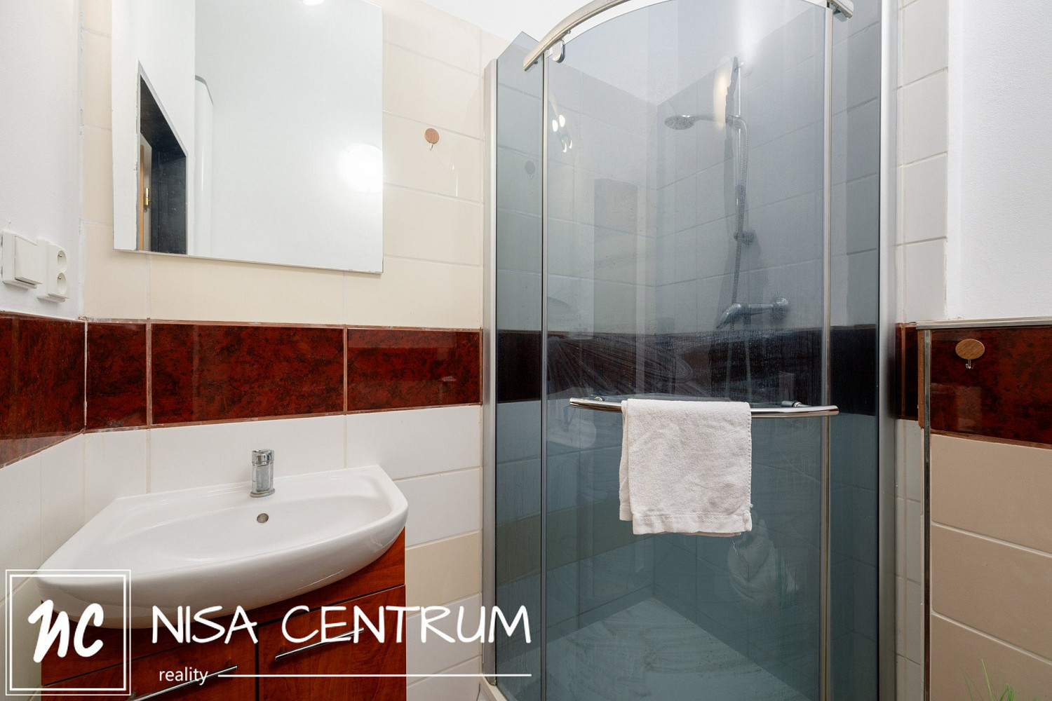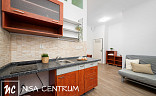 Dispozici bytu tvoří obývací pokoj s kuchyňskou linkou, která je vybavena indukční varnou deskou a lednicí, koupelna se sprchovým koutem, pračkou a toaletou.
