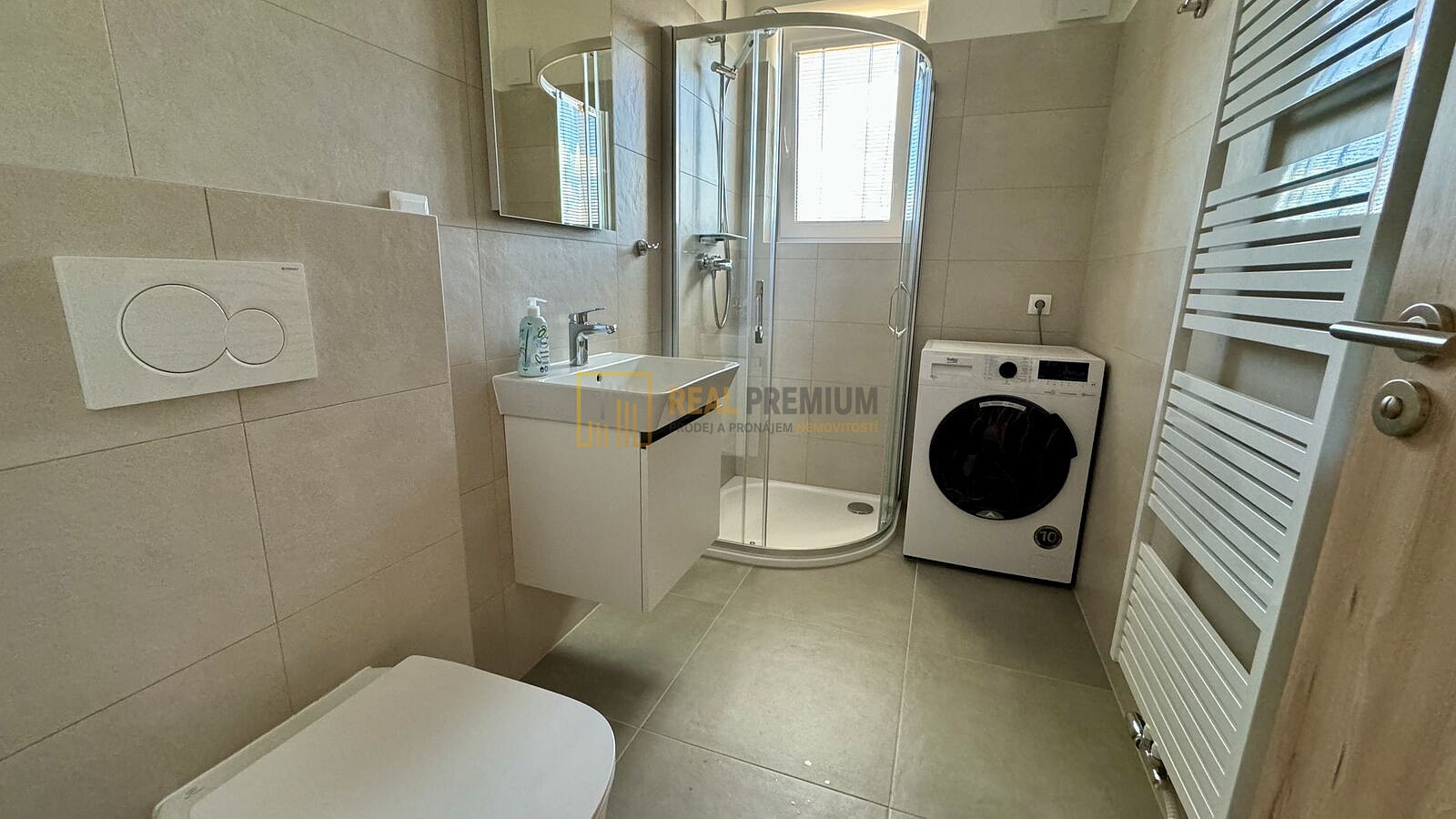- koupelna se sprchovým koutem, umyvadlem a WC - vybavena pračkou se sušičkou (2v1)