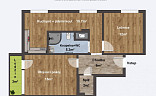 Byt o velikosti 60 m je situován v 7. patře dvanáctipatrového domu se dvěma výtahy.