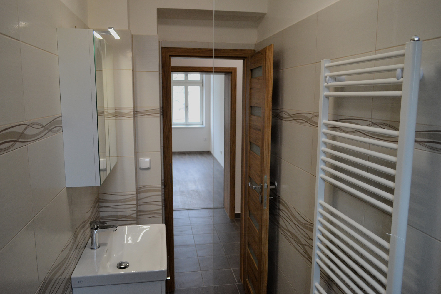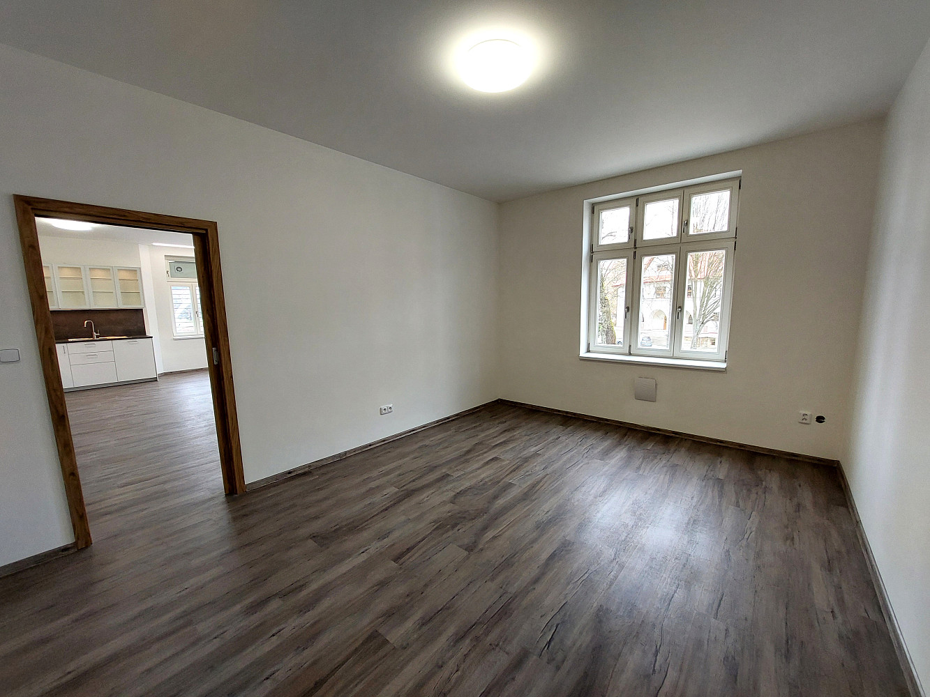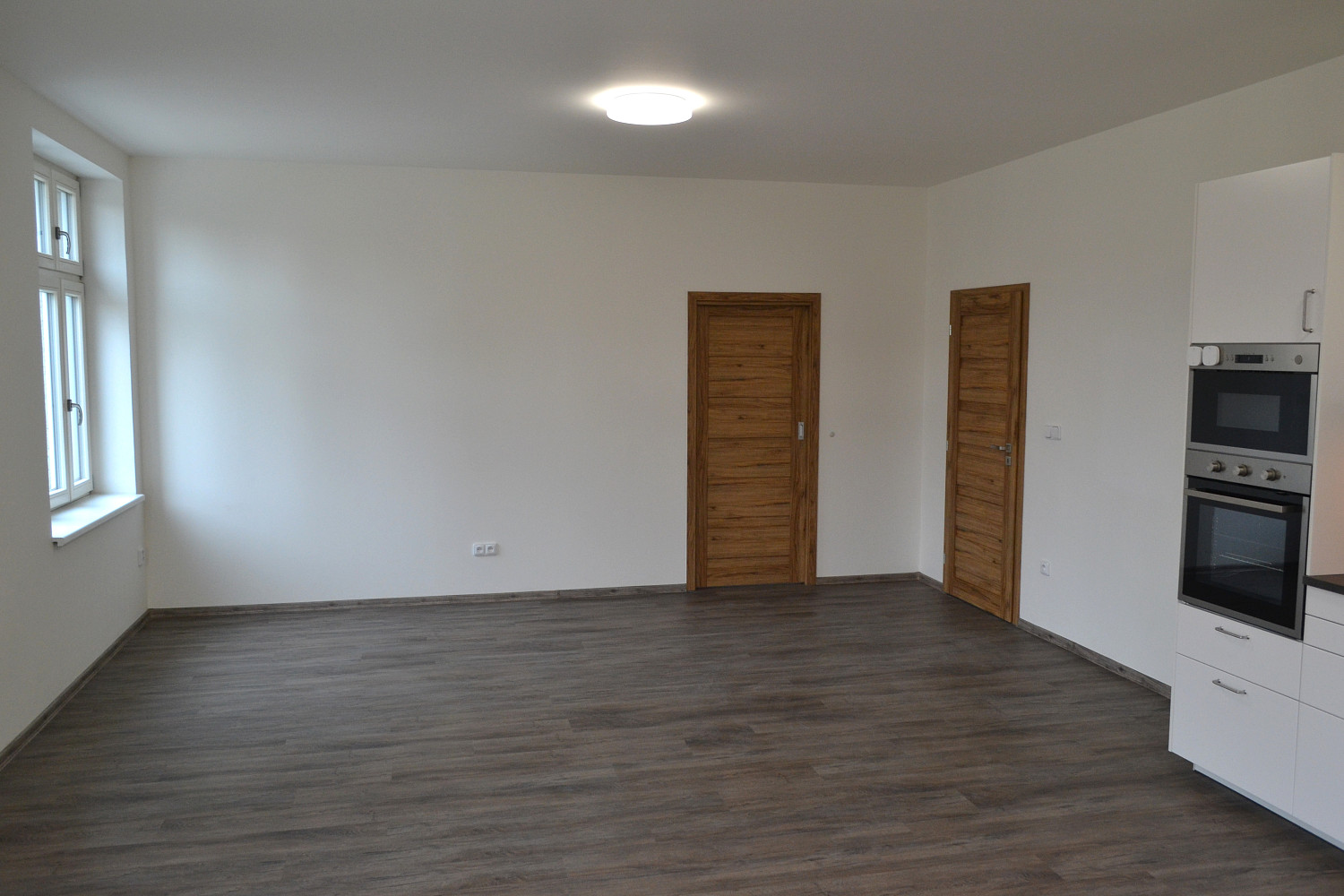 Moderní byt typu 3+kk (93 m²) po kompletní rekonstrukci ve 2. podlaží cihlové budovy, k pronájmu přímo od majitelů. Základem bytu je velký obývací pokoj (36 m²) s kuchyňským koutem vybaveným elektrickou troubou, vestavnou mikrovlnnou troubou, indukčním sporákem, myčkou na nádobí a digestoří. Dále je k dispozici ložnice (18,5 m²), pokoj (13 m²), koupelna se sprchou, umývárna s toaletou, sušárna/komora (4 m²) a chodba.