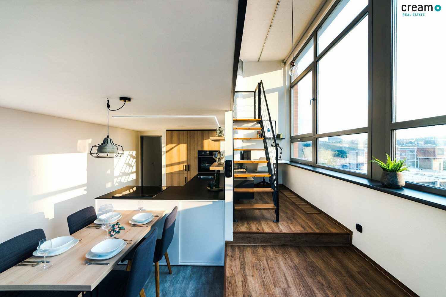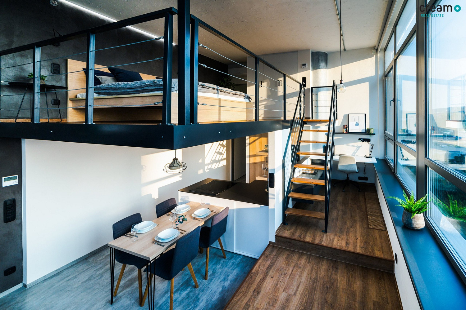 V původně průmyslovém prostředí vyrostly luxusní lofty s neotřelou atmosférou. Industriální loft s výměrou 58 m² v 6. nadzemním podlaží se vyznačuje svérázným stylem. Vestavěné patro je soukromější, a proto obvykle slouží jako ložnice, ze které se otevírá výhled na obývací pokoj. Loft je prosvětlený a taktéž klimatizovaný, což oceníte během horkých letních dnů. V budově max32 je k dispozici poslední rohový loft s výhledem na Baťův areál. Foto je pouze vzorové a loft se pronajímá nevybavený. K dispozici od 1.1.2026.