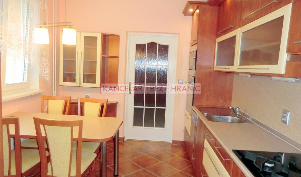 Naše společnost Vám nabízí pronájem prostorného bytu 3+1 s lodžií, ul. Severní Vršava, Zlín. CP bytu je 72 m². Nachází se ve třetím patře bytového domu. Dům prošel kompletní revitalizací. V kuchyni kuchyňská linka, plynový sporák, el. trouba, myčka, lednice s mrazákem, mikrovlnná trouba, jídelní stůl se židlemi, skříně a police. Prostorný obývací pokoj. Ložnice se vstupem na lodžii vybavena šatní skříní. Dětský pokoj s pracovním stolem, skříněmi a policemi. Koupelna se sprchovým koutem, umyvadlem a pračkou. WC samostatně. V zádveří a v chodbě jsou velké vestavěné skříně a prostor na domácí drobné práce. Podlahy v bytě dlažba a plovoucí. K bytu náleží prostorný sklep. V domě není výtah. Klidná a žádaná lokalita. Občanská vybavenost v dosahu. MHD minutu chůze. Volný od druhé půle listopadu 2025. Parkování u domu na veřejném parkovišti. Cena nájmu 13.300,- Kč, zálohy na energie a služby 5.700,-, + vratná kauce + provize RK.