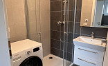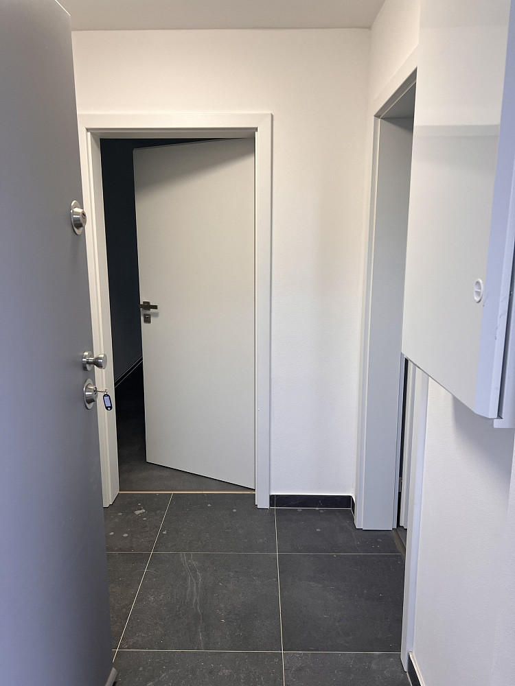 Je vybavený moderními materiály – podlahoviny jsou vinylové, interiérové dveře dřevěné, hladké, plné, v bílé barvě, okenní rámy rovněž v bílém provedení, obklady a dlažby v koupelnách v příjemných šedých barvách. K dispozici je moderní kuchyňská linka s vestavěnou varnou deskou, pečící a mikrovlnnou troubou. Součástí linky je myčka a vestavěná lednice s mrazákem.