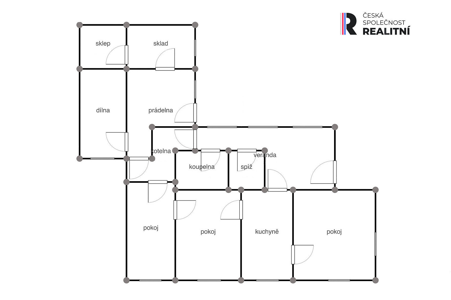 • hospodářské prostory: prádelna, dílna, sklad, sklep