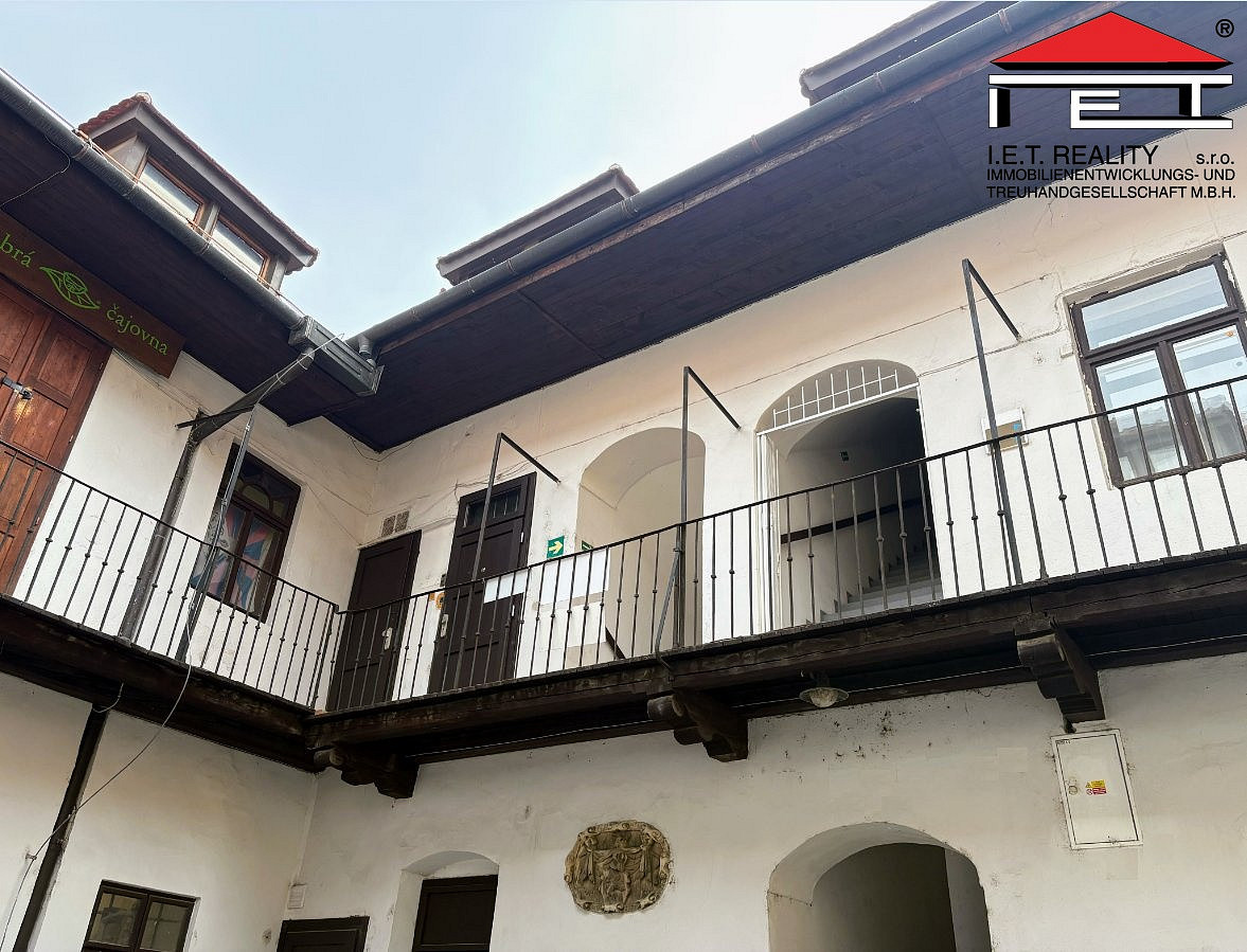 Pronájem samostatné kancelářské jednotky 44,5 m², situované ve 2. NP historické budovy v centru města, na Římském náměstí. Dvě průchozí, na sebe navazující hlavní místnosti, k nimž vede prostorná předsíň (čekárna) s toaletou. K jednotce náleží jedno parkovací místo na nádvoří domu, k pronájmu volné ihned.