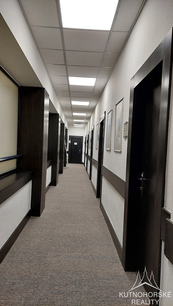 V zastoupení majitele nabízím pronájem kanceláře v Chrudimi v ulici Široká. Prostory se jsou rozděleny na hlavní kancelář 50 m², menší kancelář 13 m² a vlastní kuchyňku 12 m². Jedná se o pěknou, velkou světlou kancelář, ve které budou vyměněny koberce a stropní světla. Budova se nachází na dobré adrese, téměř v centru Chrudimi, s výbornou dopravní dostupností. Do 10 minut pěší chůze se nachází hlavní vlakové i autobusové nádraží, všechny důležité úřady jako je Finanční úřad, Městský úřad, Úřad práce, Okresní soud atd. Dále je v blízkém okolí mnoho restaurací, obchodů, bank (Komerční banka sídlí přímo v objektu). V nabídce máme i další kanceláře různých velikostí ve stejném objektu.