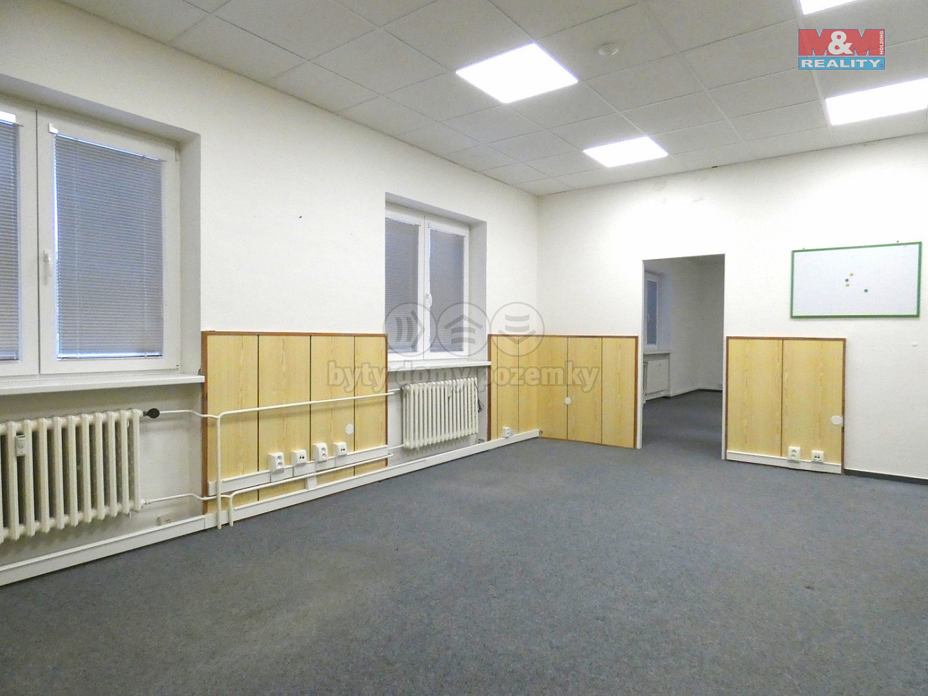 K pronájmu nabízíme soubor kancelářských prostor vč. zázemí, o celkové výměře 138 m², vše ve II. NP. Vstup do jednotlivých kanceláří z centrální chodby. Dobrý stav odpovídá doložené fotogalerii. Podlahovou krytinu tvoří koberce. V každé místnosti dostatečný počet zásuvek Některé kanceláře zajišťují i vzájemnou průchodnost. Součástí pronájmu je také kuchyňka. Sociální zázemí přímo na patře. Inventář umístění v jedné z místností není součástí pronájmu, jelikož je ve vlastnictví předchozího nájemce. Jedná se o samostatnou část objektu, kde budoucí nájemce má zajištěno své soukromí. Výborná dostupnost i přes MHD - Náměstí Republiky. Parkování na ulici. Stravování v místě. Prostory jsou připraveny k pronájmu od 1.2.2023. Prohlídky po předchozí dohodě. Více informací u makléře.