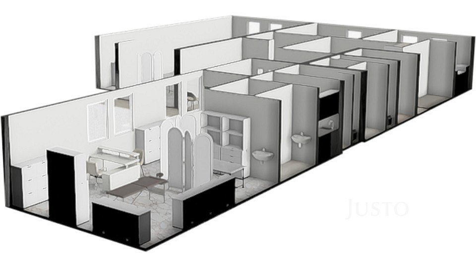 - Lze pronajmout celé patro, nebo i každou ordinaci jednotlivě.