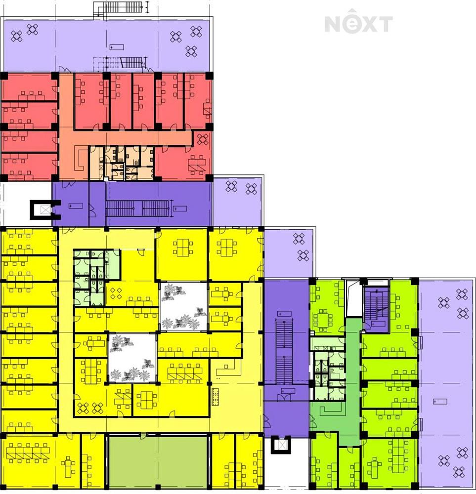 Přístup 24/7. Samozřejmostí jsou přístupy na venkovní terasy určené pouze pro kanceláře k odpočinku a relaxaci s možností využití i venkovního sezení. K dispozici kuchyňka.