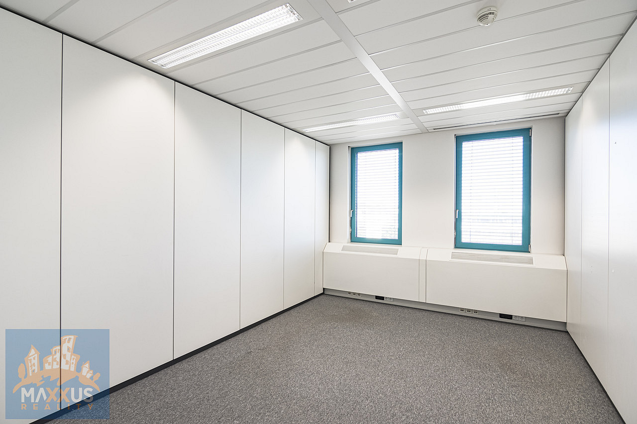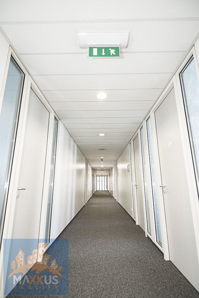 Kancelář disponuje vlastním topením/klimatizací, vestavěnou skříní a venkovními roletami. Kancelář není vybavená.