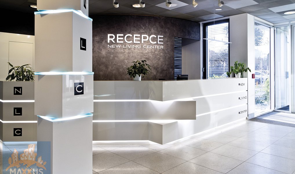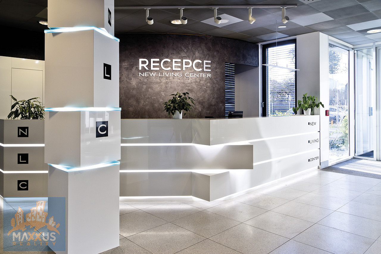 Kancelář se nachází ve 4. patře v budově New Living Center - moderní centrum designu a bydlení.