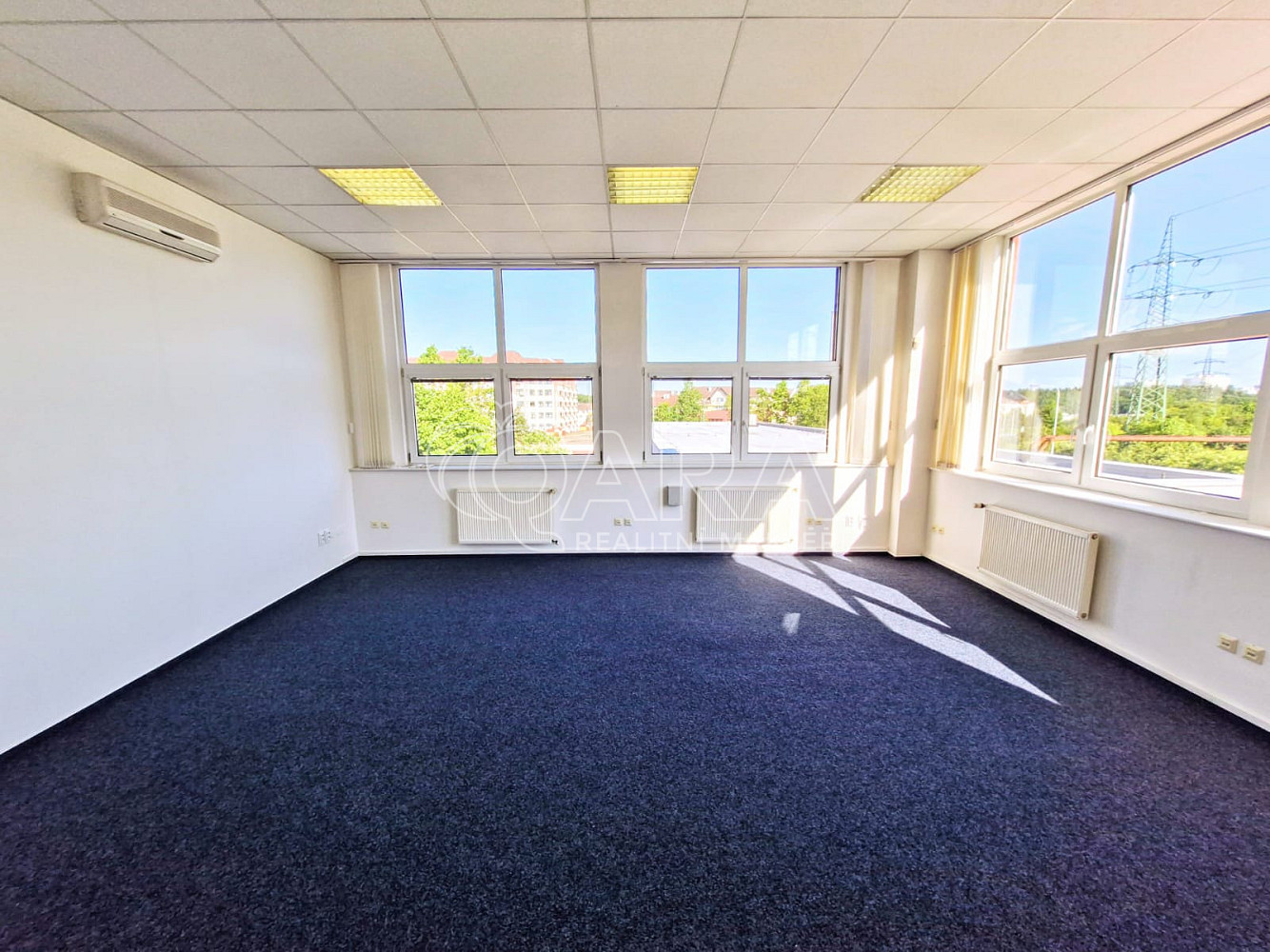 Bez provize RK nabízíme k pronájmu samostatnou, klimatizovanou a rohovou kancelář (36,3 m²) na pomezí Kunratic a Chodova. Díky oknům na dvě strany jde o velice vzdušné a výborně osluněné pracoviště. K dispozici je také sdílená terasa, na níž se vchází ze společné chodby.