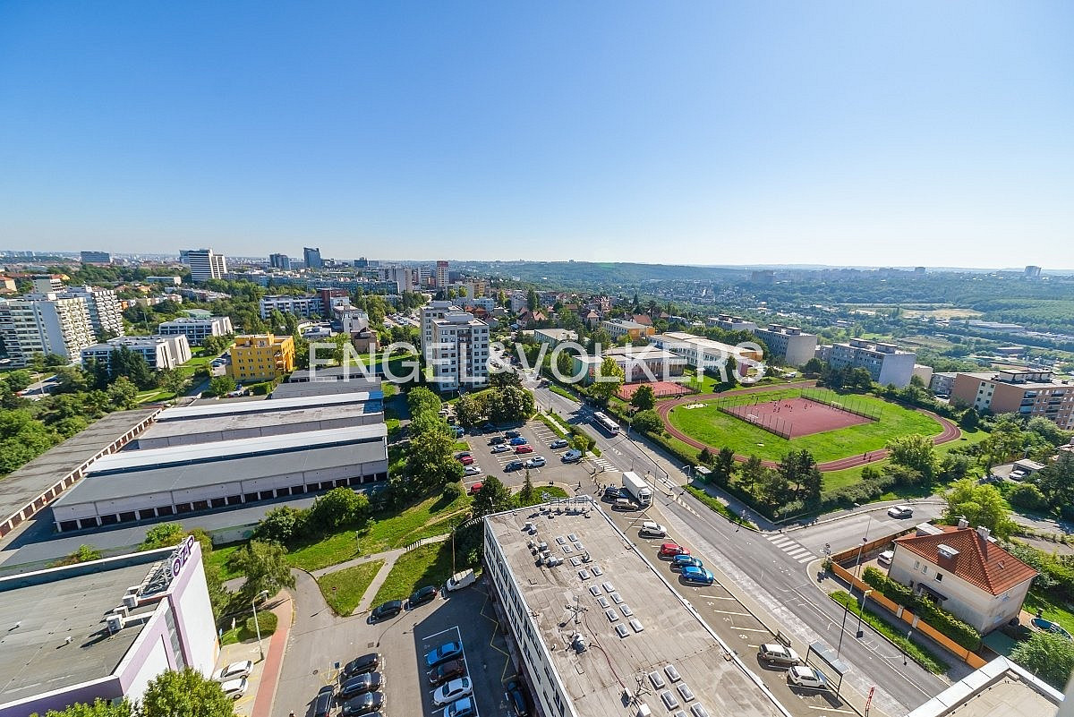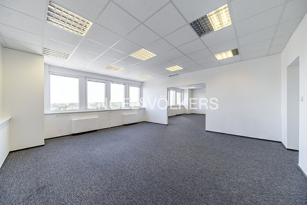 K okamžitému pronájmu nabízíme kanceláře na Praze 4 – Braník ve výškové budově s velkolepým výhledem na Prahu. Dopravní dostupnost zajišťuje autobusová zastávka Na Planině a Zelený pruh, která je v bezprostřední blízkosti budovy.